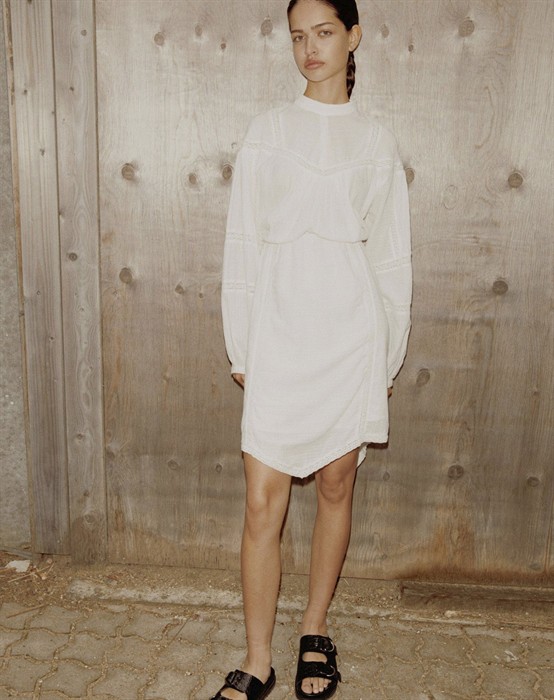 2nd Melisandra Kleid - 2nddayWunderschönes weißes Kleid mit Stickdetails. Elastik in der Taille. Lange Ärmel. Schnitt am Knie.