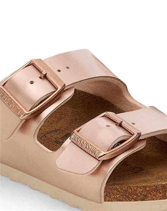 Arizona Kids Birko-Flor Sandale - Electric Copper - Birkenstock KidsFeinste Sandalen für Kinder von BirkenstockArizona Modell mit zwei Schnallen über dem FußHergestellt aus Birko-FlorSchmale Fußbettung
