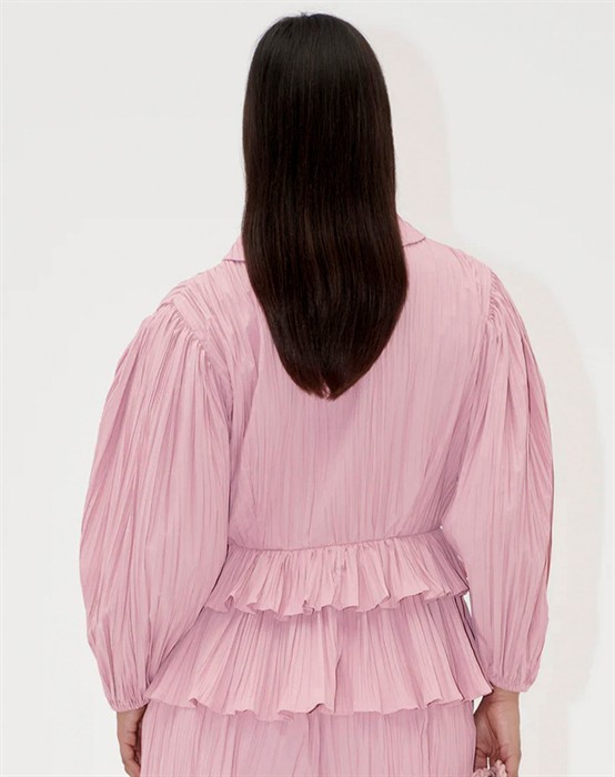 Balloon Sleeve Tie Bluse - Pink Nectar - Stine Goya