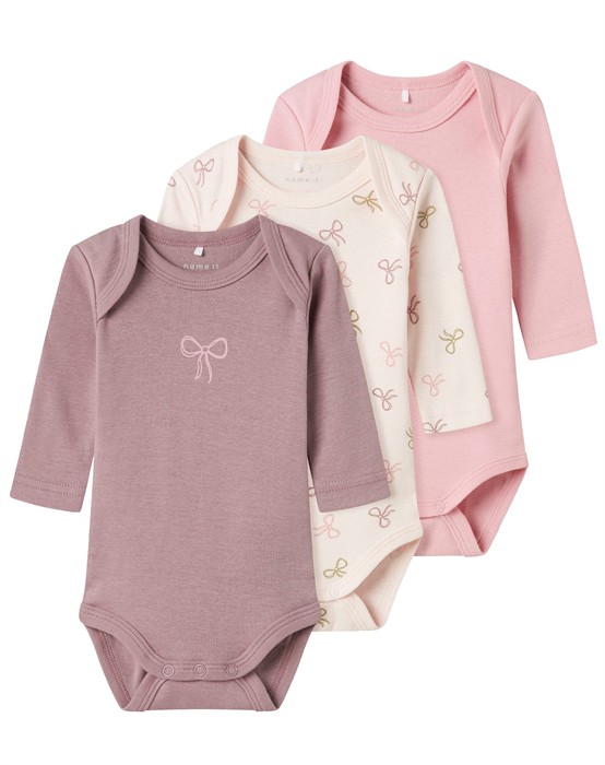 Barely Pink Bow Bodystockings - 3er Pack - Name It