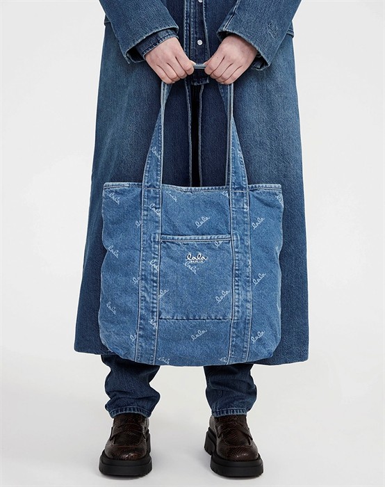 Carmela Printed Logo Denim Tasche - Washed Blue
