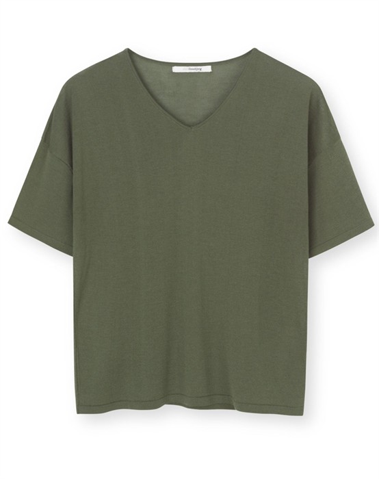 Schönes leichtes Strick-T-Shirt von Sibin Linnebjerg. Der Cora Strik ist aus einem leichten Material gefertigt, das ihn angenehm zu tragen macht. Er ist mit V-Ausschnitt und kurzen Ärmeln mit Drop-Down-Effekt designt.