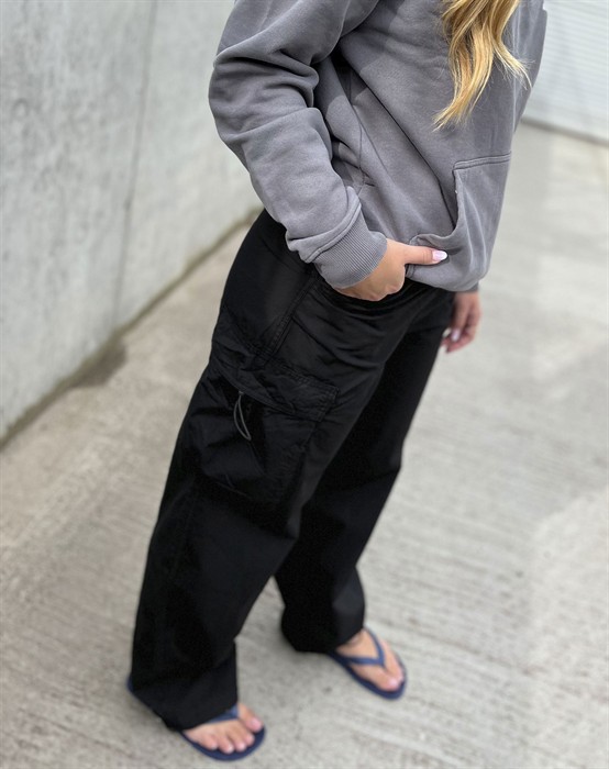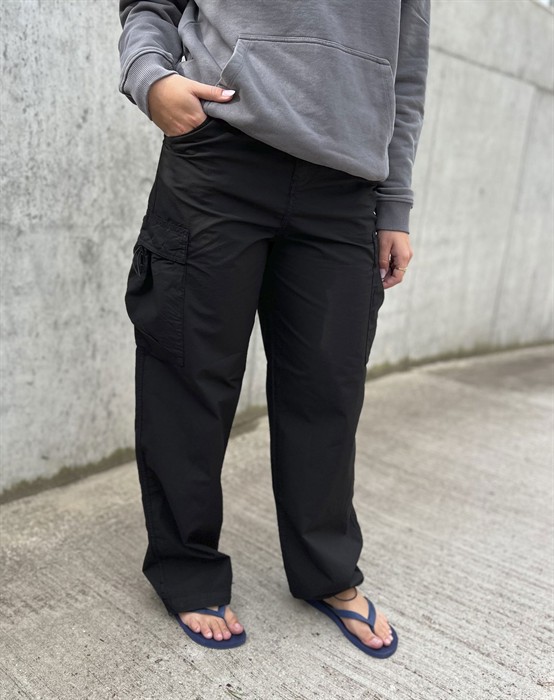 Cropper Cargo Hosen - WoodbirdSeitentaschen mit GummizugVerschluss mit ReißverschlussKann am Knöchel geschnürt werden