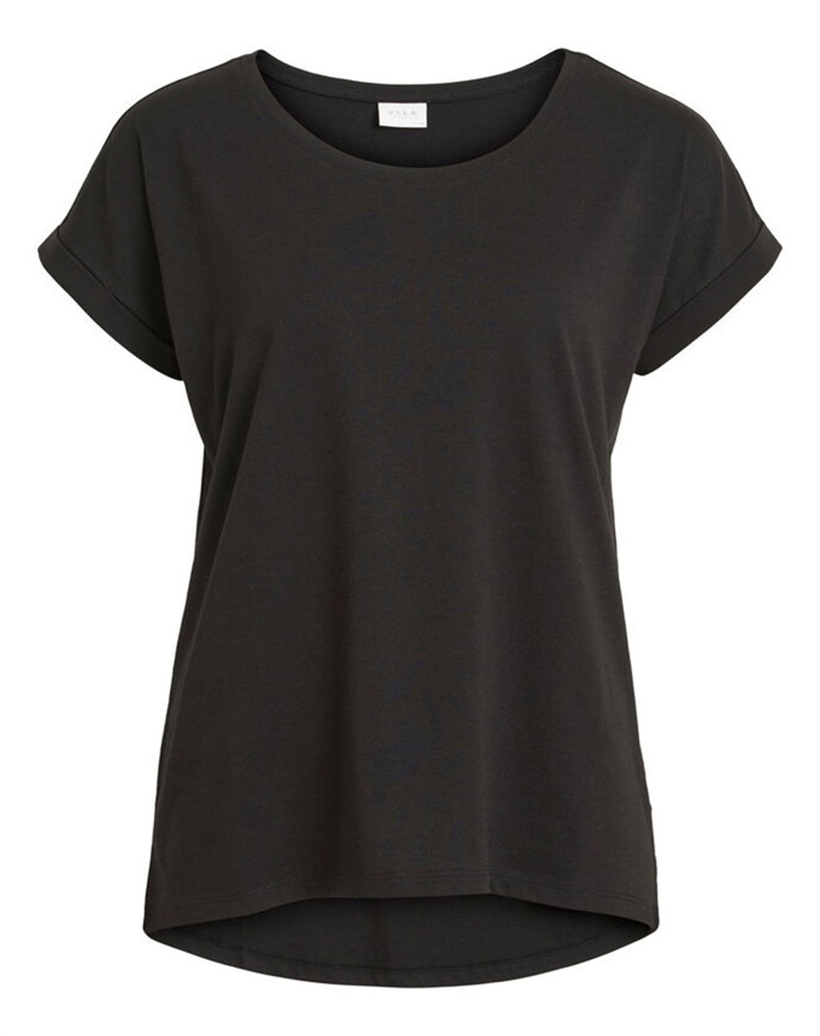 Einfache Basic-T-Shirt mit einem kleinen umgeschlagenen Ärmel und rundem Halsausschnitt von Vila. Die T-Shirt hat eine normale Passform, ist jedoch etwas locker und ein Must-Have in jeder Damengarderobe. Ihr schlichtes Design macht es einfach, sie mit fast allem zu kombinieren. Sie ist in mehreren Farben erhältlich.