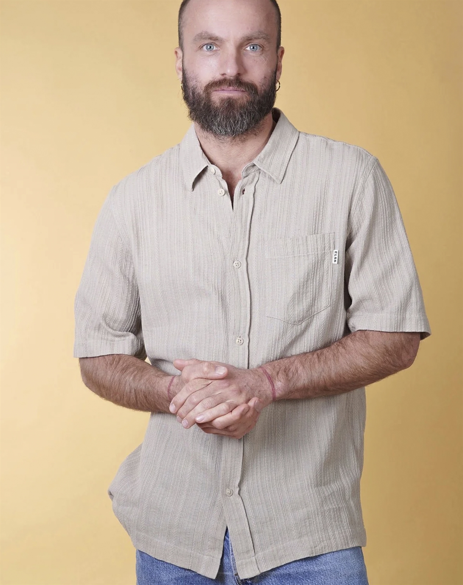 Elsk - Structure Mens Skjorte - Calm Sand ist für alle gemacht, die sich durch ihre Kleiderwahl ausdrücken möchten, ohne zu laut zu sein. Eine Wahl für alle, die das Detail im Einfachen und die Stärke im Subtilen schätzen.