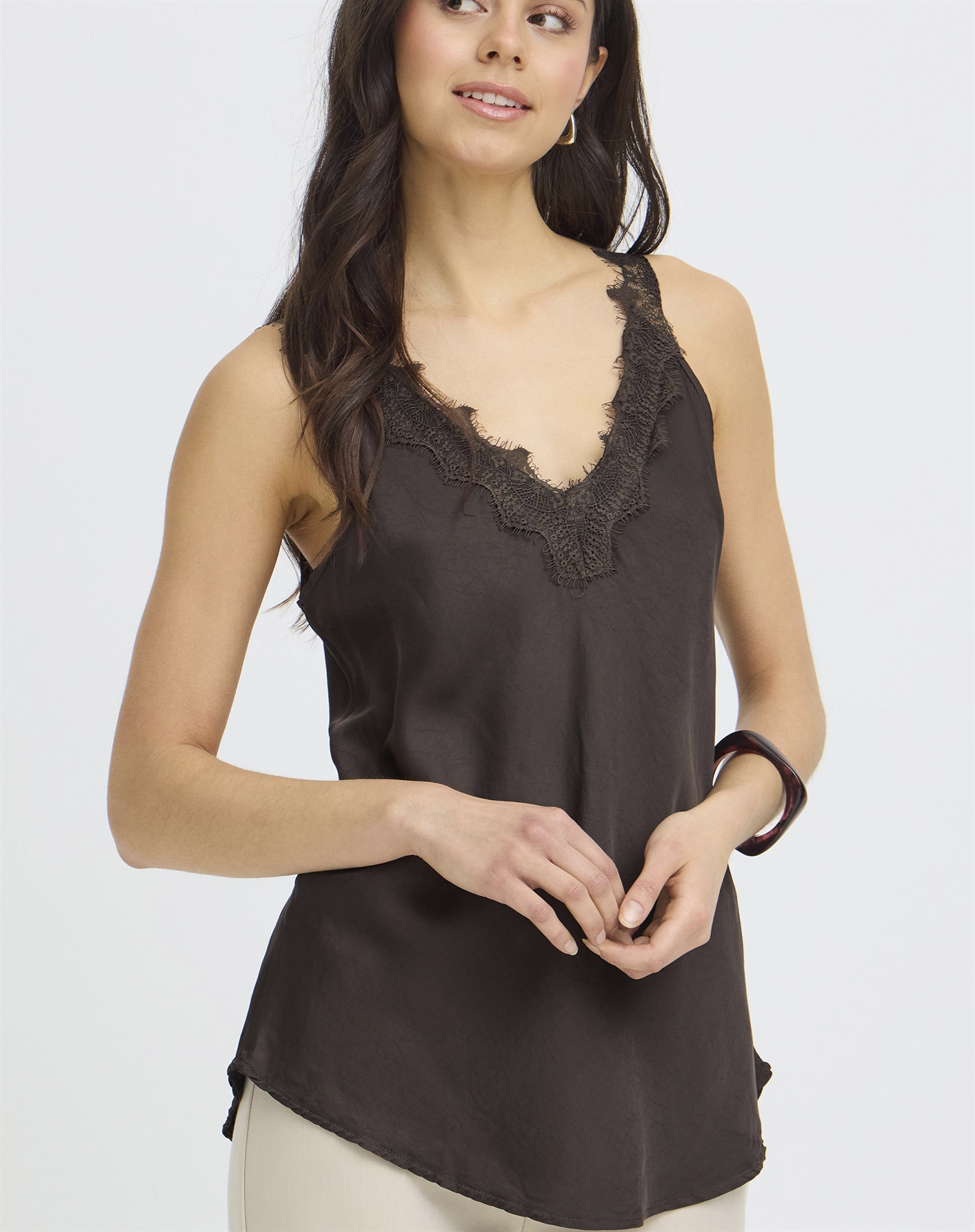 Stell dir einen lauen Sommerabend vor, an dem du dieses Top mit einer leichten weißen Hose und Sandalen stylst. Oder an kühleren Tagen, an denen es unter einer weichen Strickjacke getragen und mit einer Jeans kombiniert werden kann. Das Top ist eine tolle Wahl für ein Kleidungsstück, das sich an viele verschiedene Looks und Anlässe anpassen lässt – und damit ein praktischer Bestandteil jeder Garderobe ist.