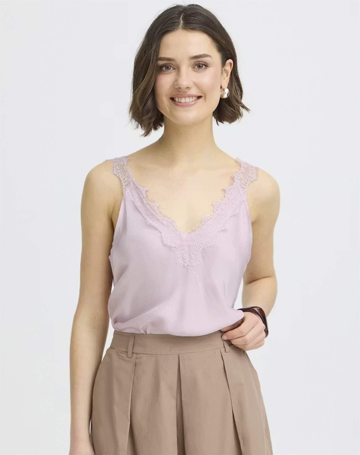Dieses Top ist ein wunderbares Beispiel dafür, wie sich Schlichtheit mit Eleganz verbinden lässt, und es wird ganz sicher einen besonderen Platz in deiner Garderobe finden. Mit Fransa - FRCeleste Top 1 - Rose Smoke bist du bereit, der Welt mit einem Hauch von Anmut und Stil zu begegnen.