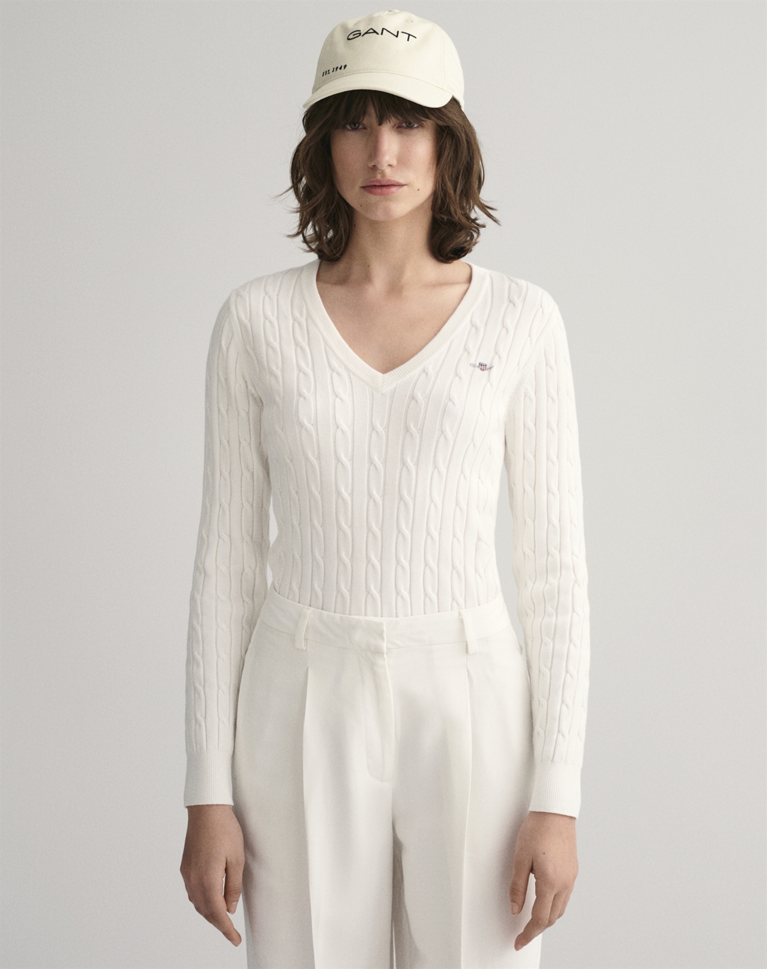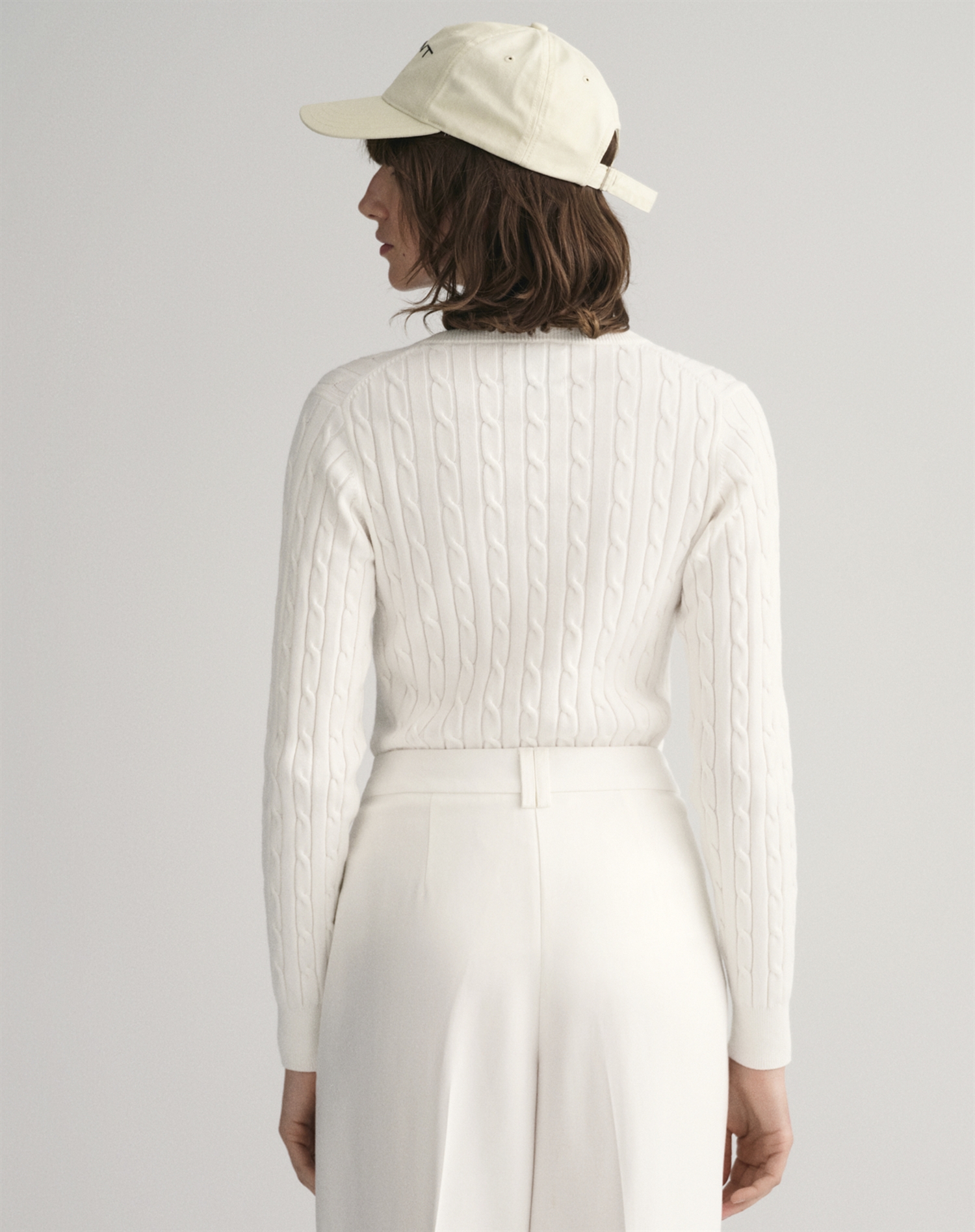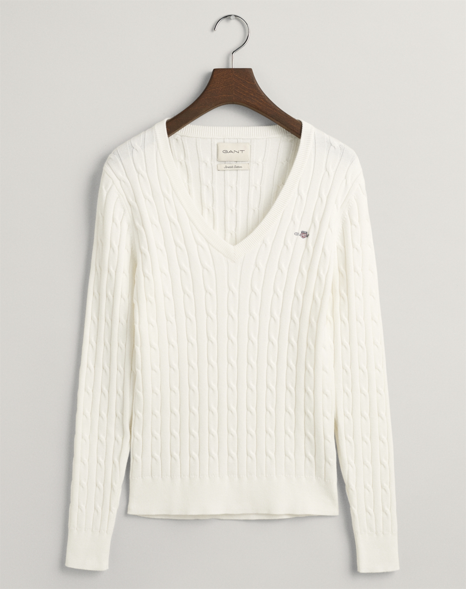 Gant - Cable V-Neck Strik - Eggshell
