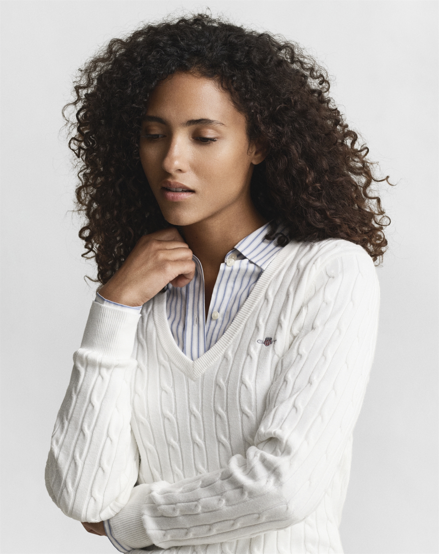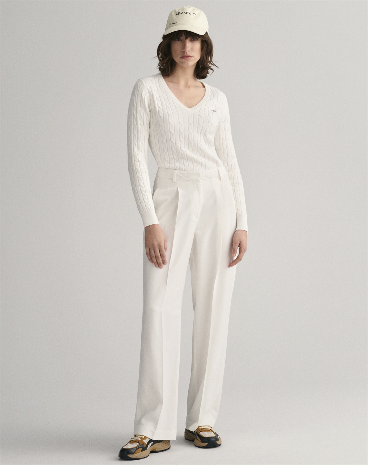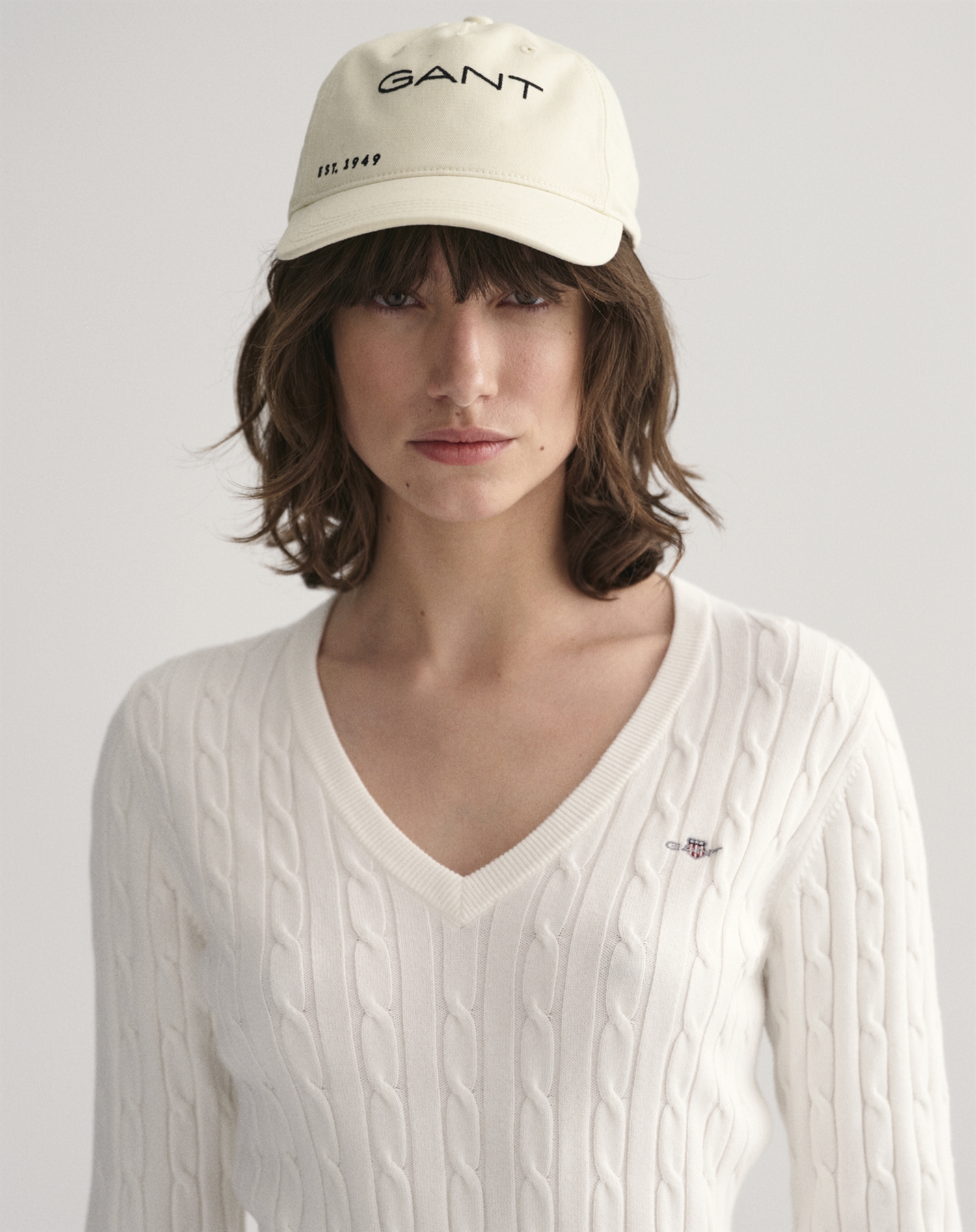 Gant - Cable V-Neck Strik - Eggshell
