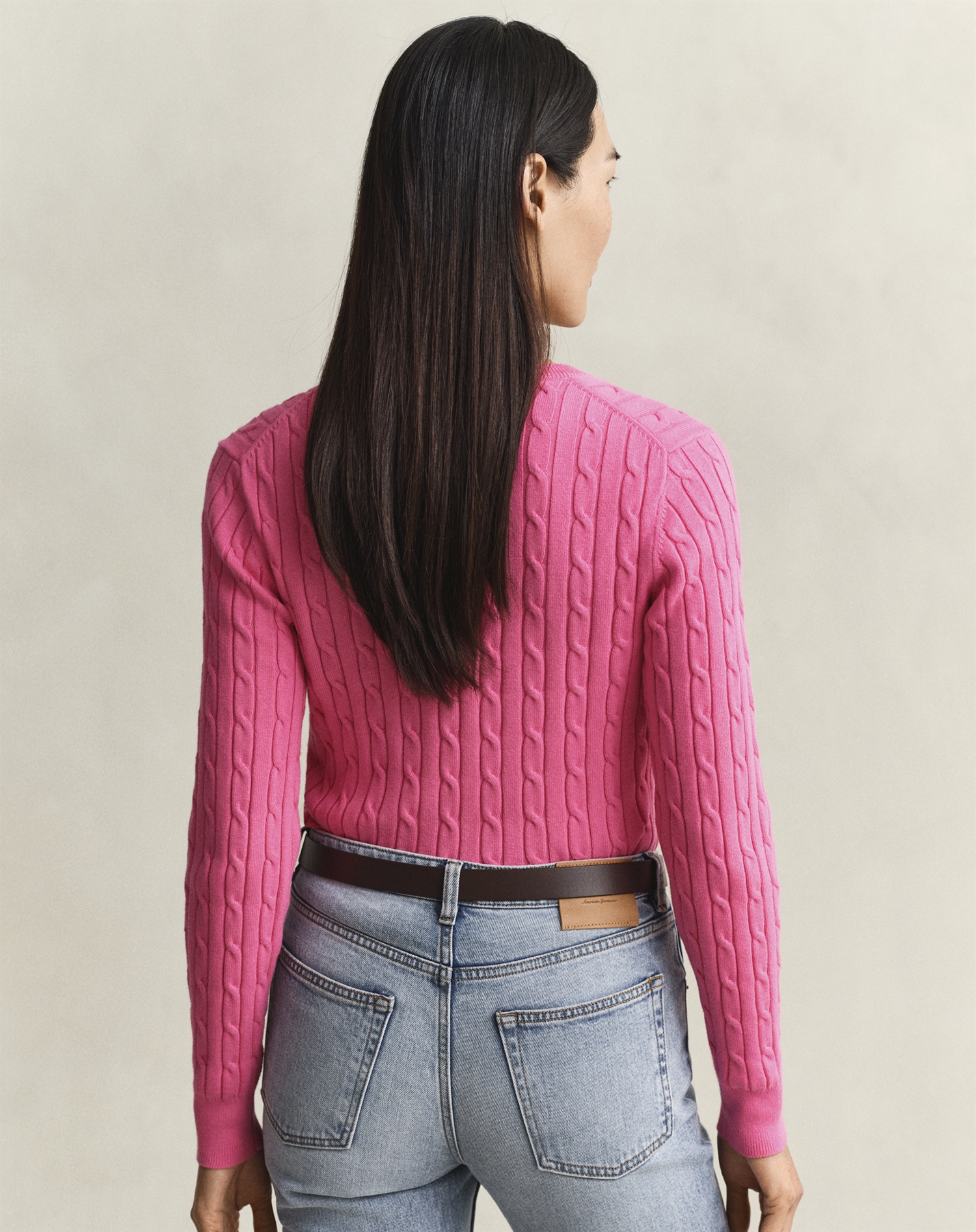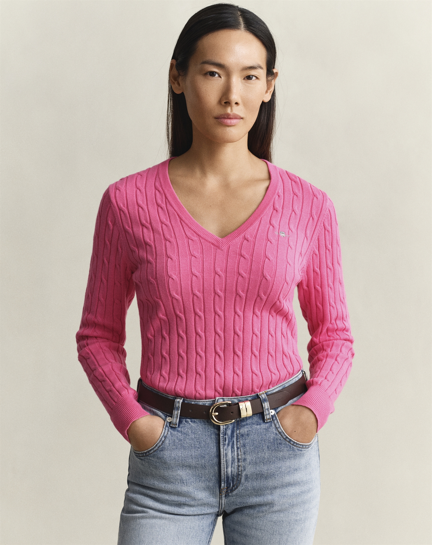 Gant - Cable V-Neck Strik - Bright Fuschia