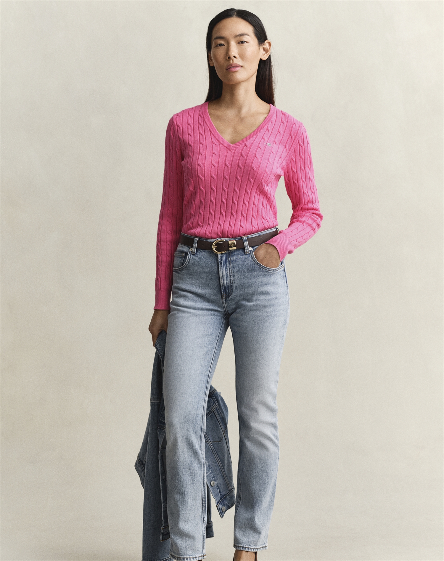 Stell dir einen kühlen Herbsttag vor, an dem die Blätter im Wind tanzen und du etwas brauchst, das sowohl stilvoll als auch warm ist. Genau hier kommt Gant's Cable V-Neck Strik in Bright Fuschia ins Spiel. Dieser Strick ist ein fantastischer Begleiter für die Alltagsgarderobe ebenso wie für besondere Momente. Die klare Fuchsia-Farbe ist wie ein frischer Windhauch, der jedem Outfit Leben einhaucht, und das klassische Zopfmuster sorgt für einen zeitlosen Look, der nie aus der Mode kommt.