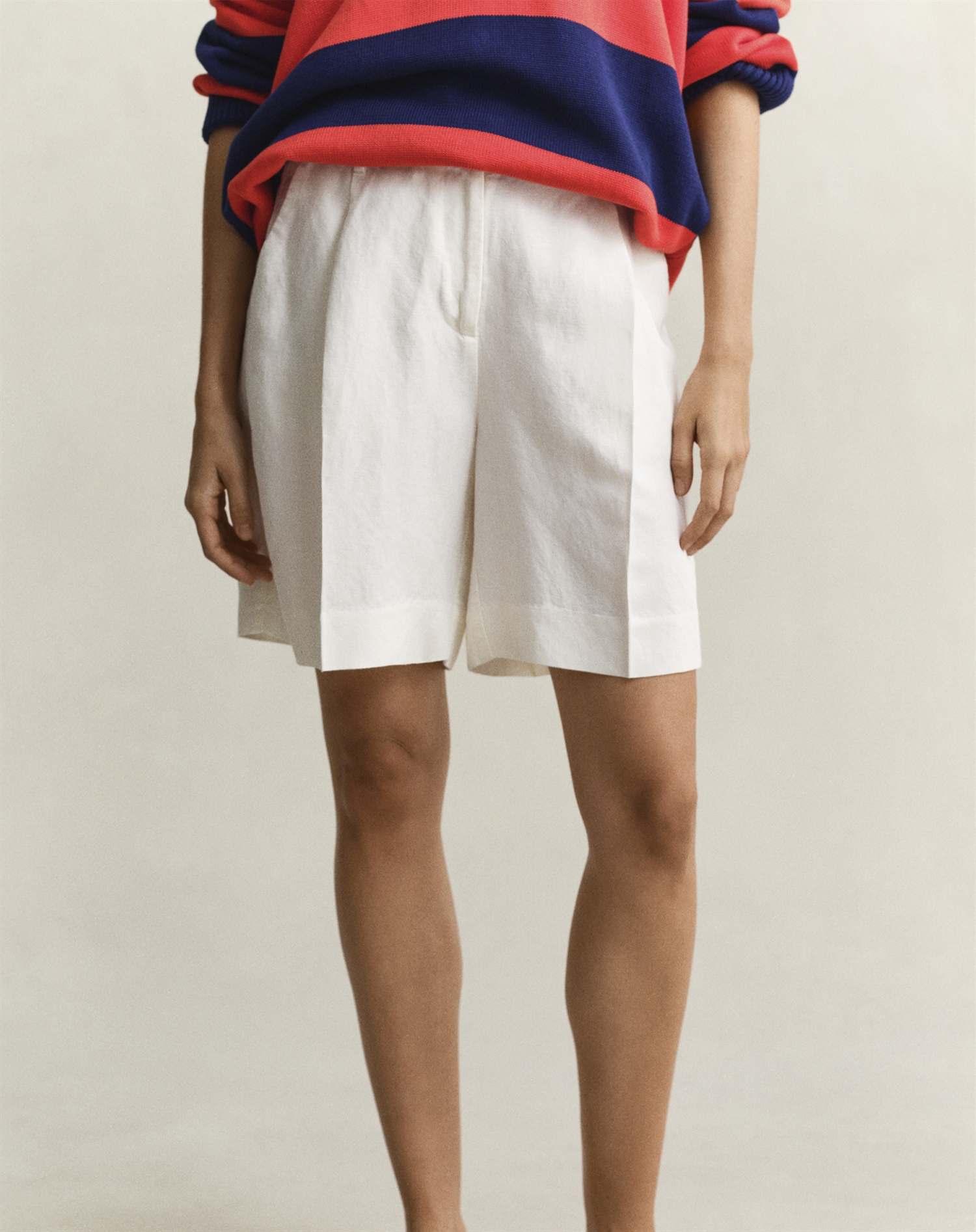 Stell dir einen sonnigen Tag vor, an dem du am Strand entlang schlenderst oder ein entspanntes Mittagessen in der Stadt genießt. Die hellen "Eggshell" Shorts ergänzen jedes sommerliche Oberteil – vom lässigen T-Shirt bis zum leichten Hemd. Kombiniere sie mit Sandalen oder deinen Lieblingssneakers für einen Look, der zugleich cool und bequem ist.