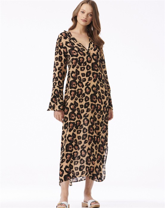 Genie Sahara Kleid - oneseason AustraliaWunderschönes Kleid im feinsten Leopardenmuster von oneseason Australia. Das Genie Sahara Kleid ist aus einem leichten und feinen Material gefertigt und hat eine schöne und entspannte Passform, die für einen tollen Look und hohen Tragekomfort sorgt. Das Kleid ist mit langen Ärmeln, einem Knopfverschluss am Halsausschnitt und einer guten Länge designt, die sowohl mit nackten Beinen als auch mit einer Jeans darunter getragen werden kann.