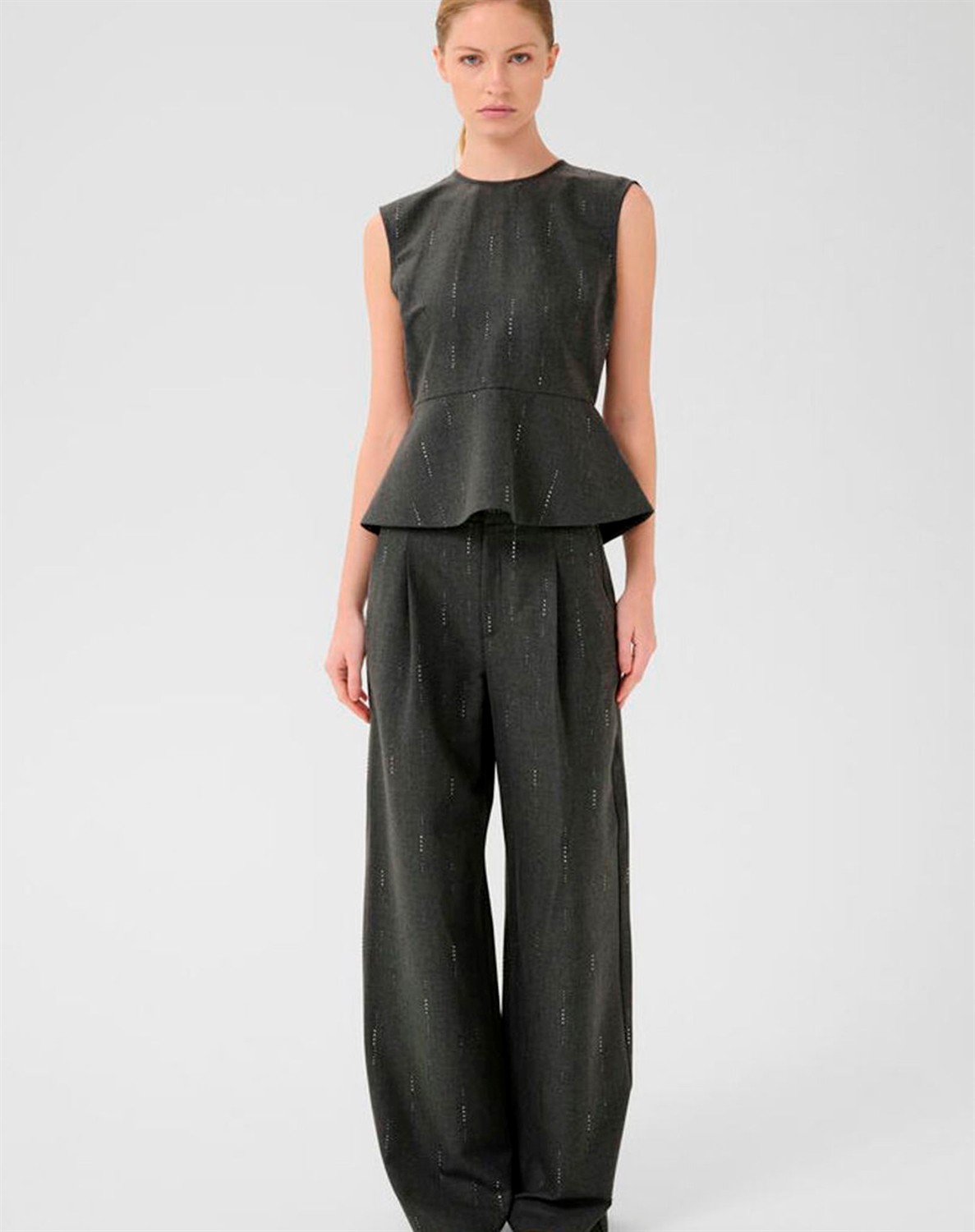 Gestuz - GZAdira Peplum Top - Dark Grey Melange