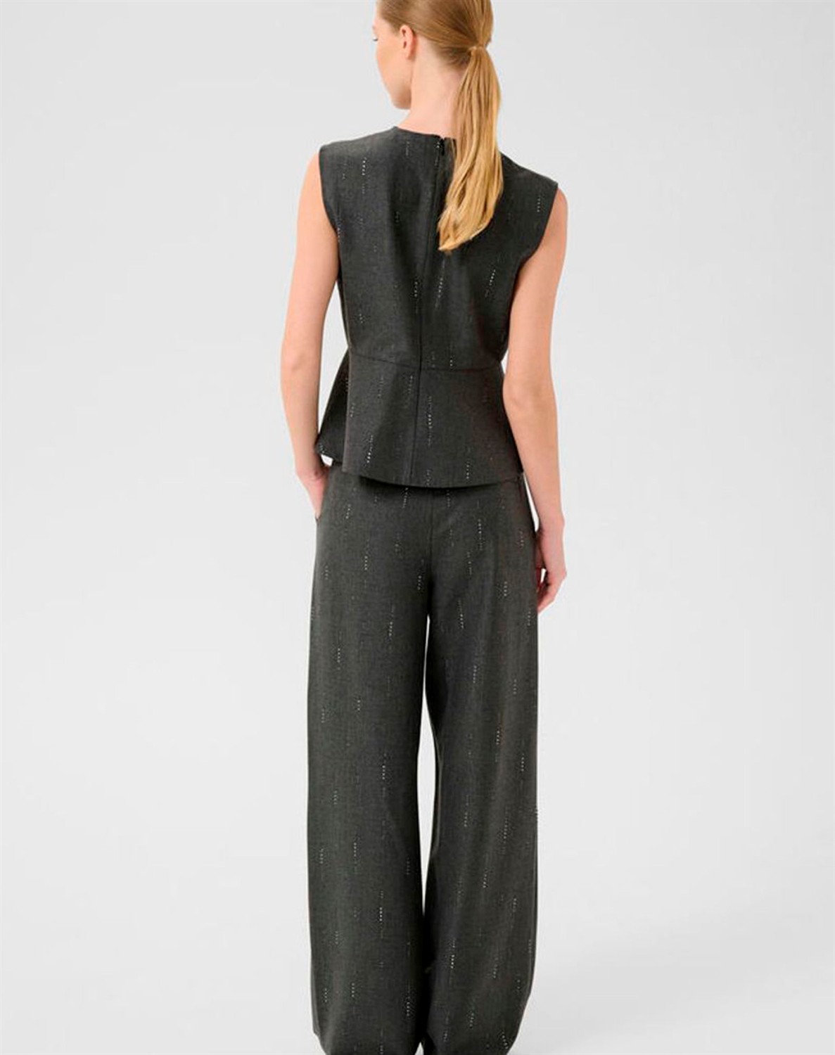 GZAdira Peplum Top - Dark Grey Melange