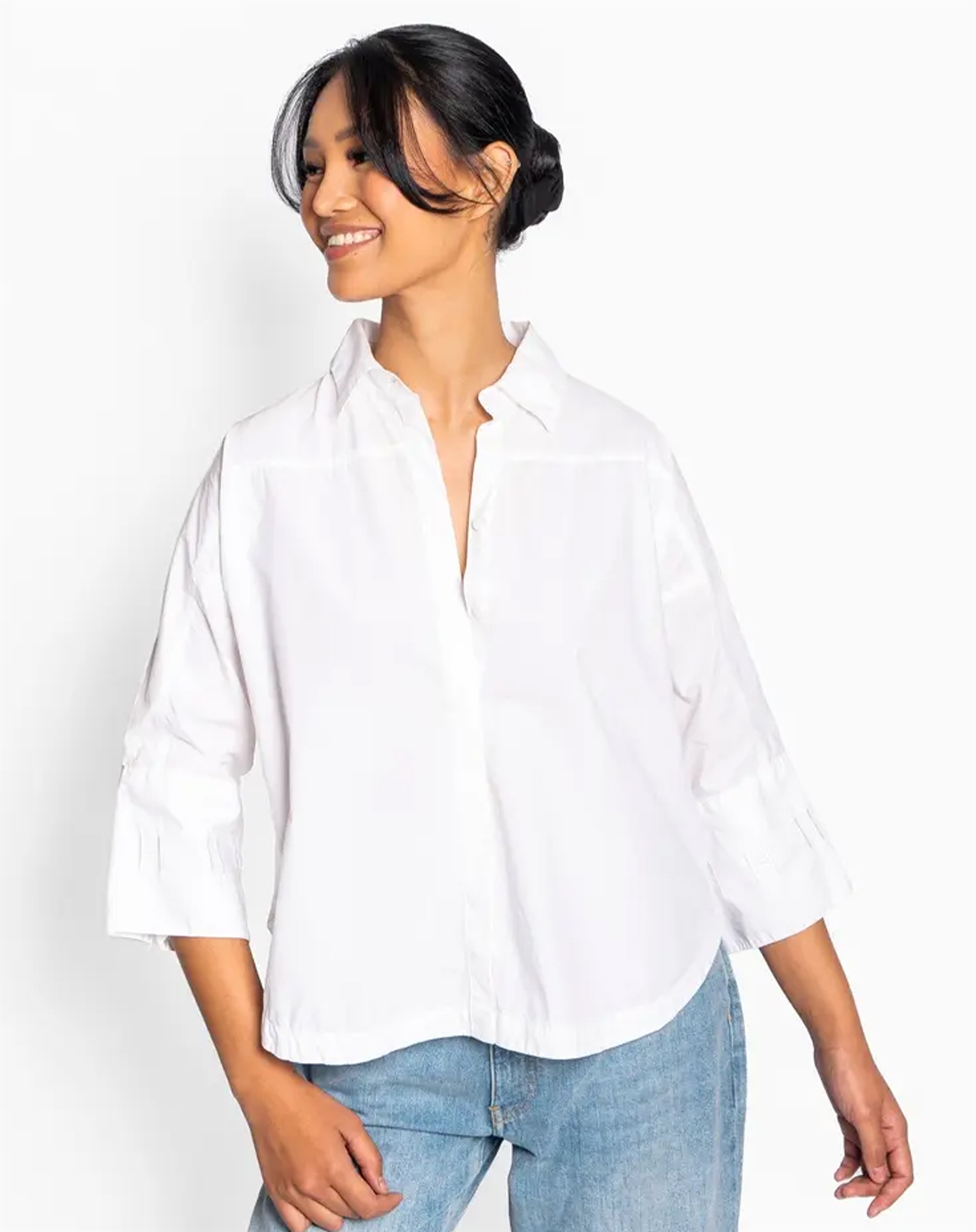 Stell dir vor, du stylst das Arya-Hemd für einen Arbeitstag mit einer maßgeschneiderten Hose und eleganten Loafern. Oder vielleicht für einen entspannten Brunch mit Freunden, bei dem du es mit einer getragenen Jeans und deinen Lieblingssneakers kombinierst. Weiß ist eine Farbe, die zu fast allem passt, und das Arya-Hemd macht es leicht, sowohl raffinierte als auch lässige Looks zu kreieren.