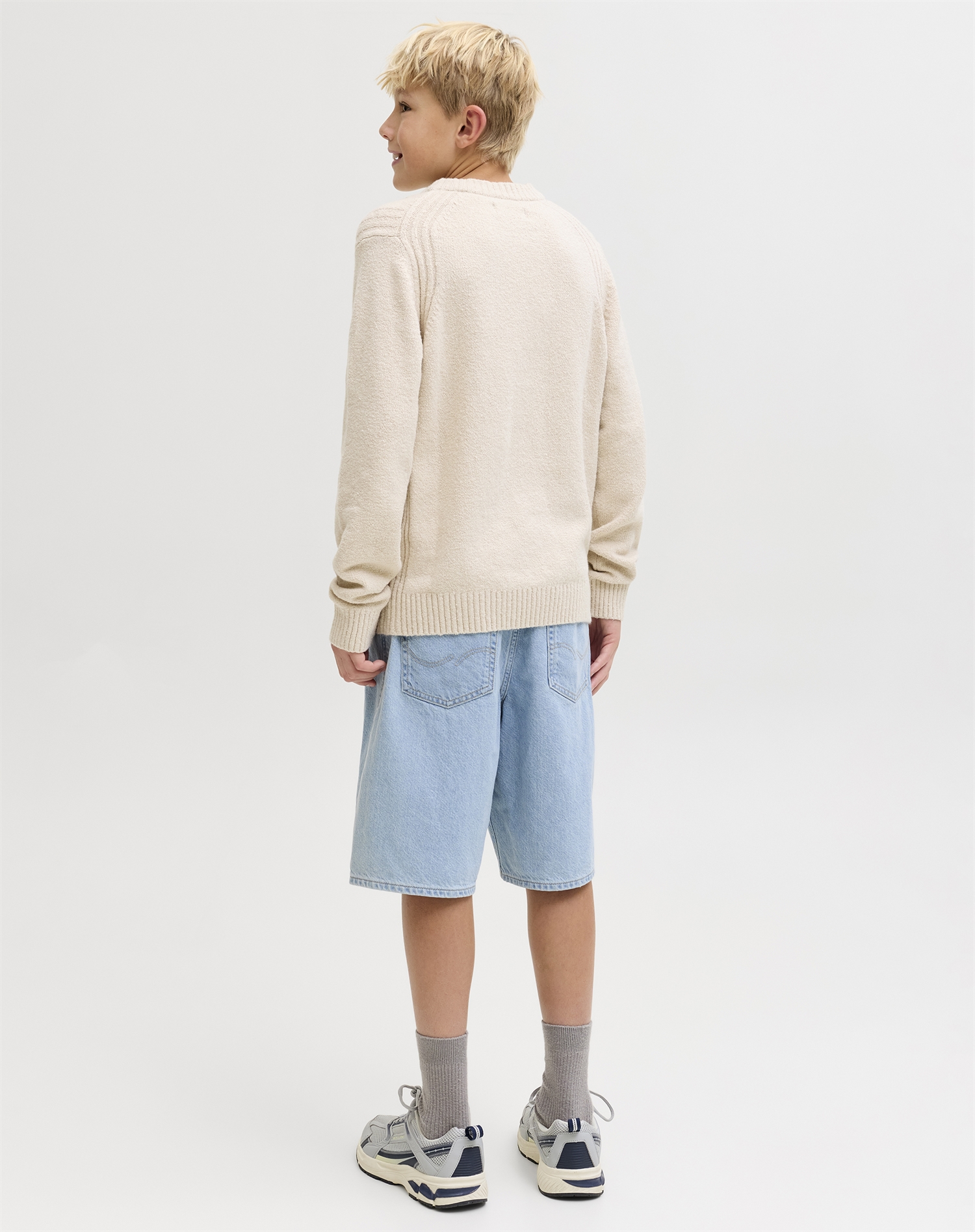 Es gibt etwas ganz Besonderes an den ersten Sommertagen, wenn die Sonne beginnt, die Wangen zu wärmen, und es Zeit ist, die leichten Outfits aus dem Kleiderschrank zu holen. Jack & Jones Junior präsentiert die JJIAlex Denim Shorts in einem schönen Blue Denim, gemacht, um junge Jungs auf Abenteuern zu begleiten. Mit ihrem zeitlosen Design und der vielseitigen Farbe werden diese Shorts schnell zu einem unverzichtbaren Teil der Garderobe.