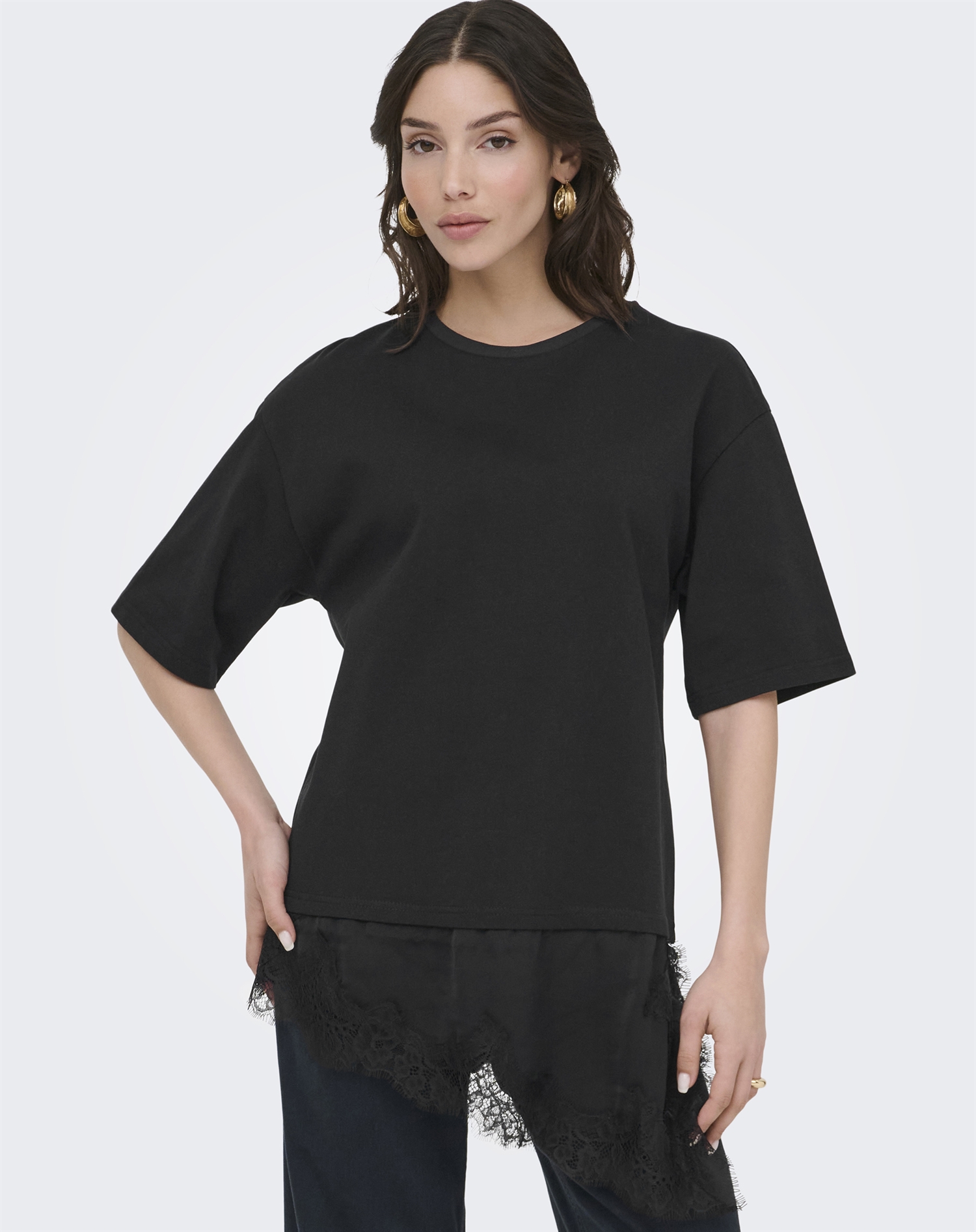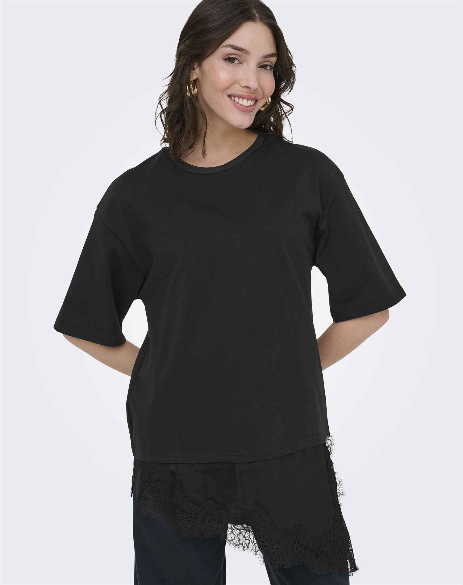 JDY - JDYAlma Lace Detail T-Shirt - Black