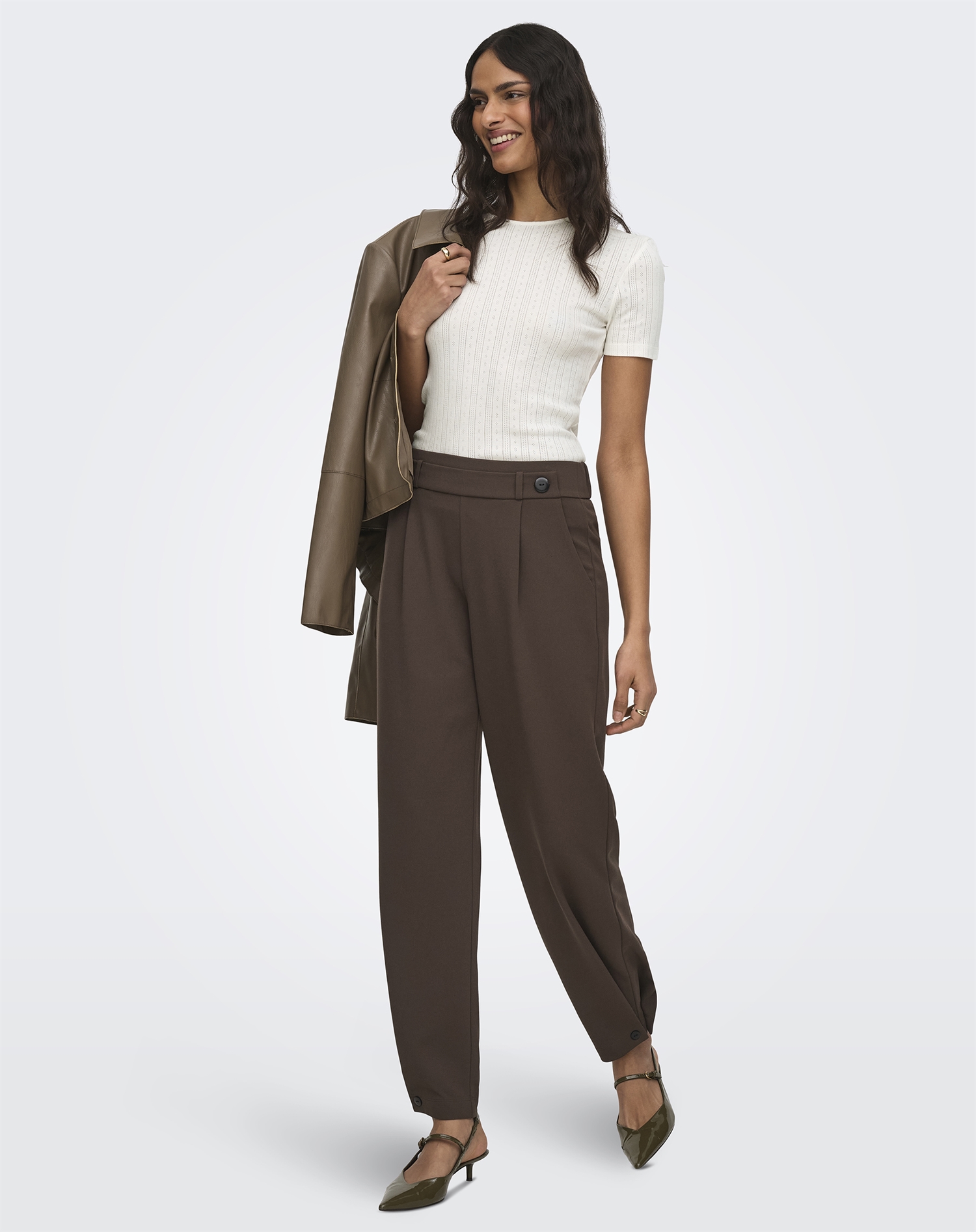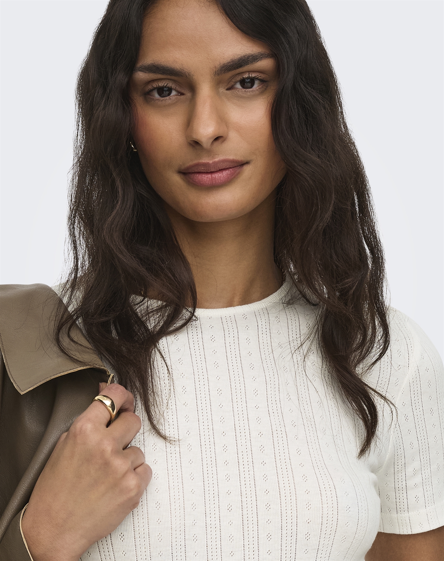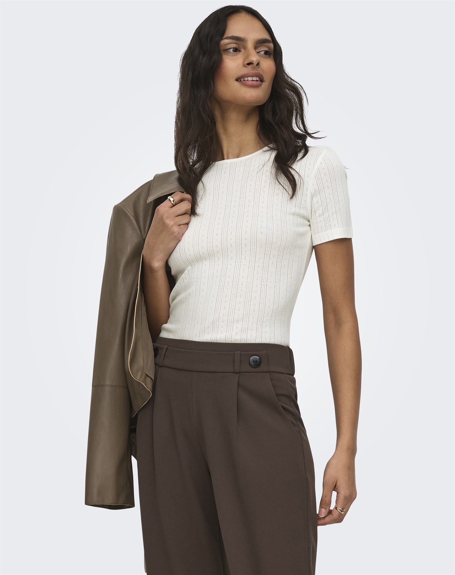Versuche, dieses Top mit einer High-Waist-Jeans und einer leichten Jacke zu kombinieren – für einen entspannten Look. Alternativ kannst du es mit einem Rock und elegantem Schmuck für einen Abend ausführen. Seine neutrale Farbe macht es leicht, es sowohl mit kräftigen Farben als auch mit gedeckteren Nuancen zu kombinieren – so hast du unendliche Möglichkeiten, deinen persönlichen Stil auszudrücken.