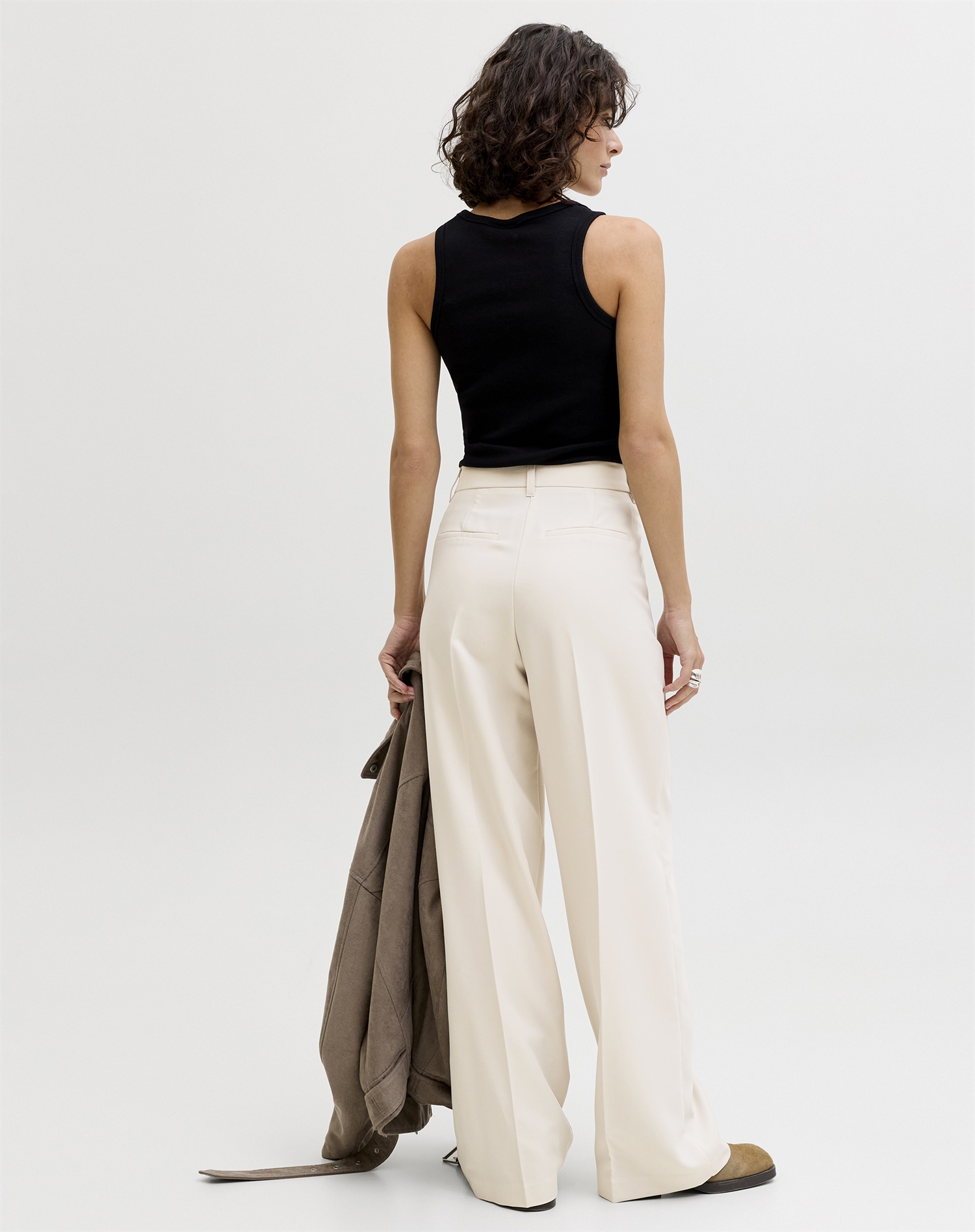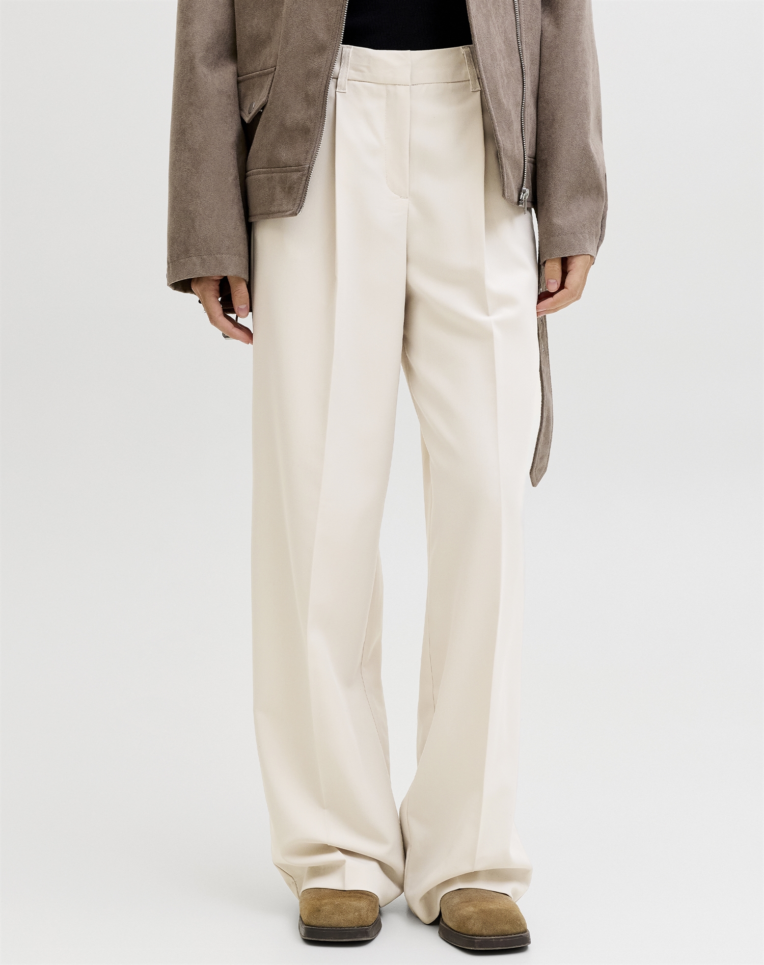 Stell dir vor, du kombinierst diese Hose mit einem figurbetonten Top oder einer lockeren Bluse für einen noch raffinierteren Look. Sie passt perfekt sowohl zu Sneakers für einen entspannten Tag in der Stadt als auch zu stilvollen Stiefeln, wenn es abends ausgeht. Die Farbe "Moonbeam" macht es leicht, sie sowohl mit neutralen Tönen als auch mit auffälligeren Farben zu kombinieren.