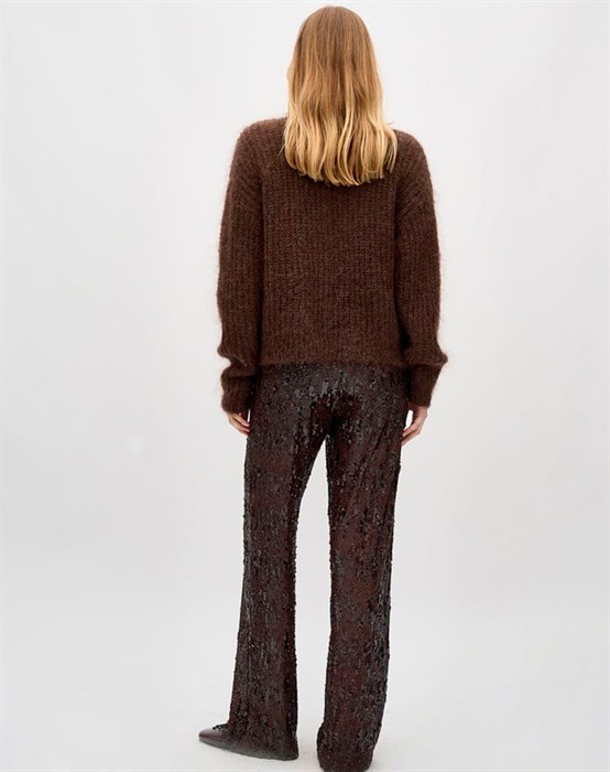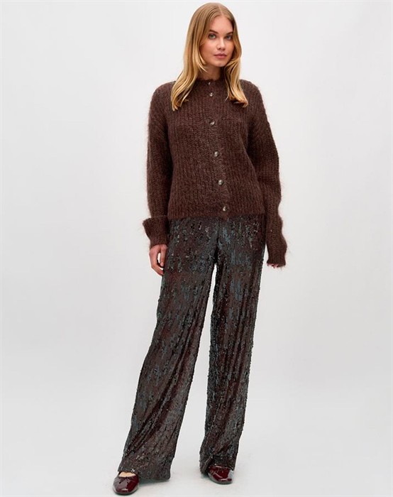 Kanita Hose - mbyMSchöne Hose mit Pailletten in einer wunderschönen braunen NuanceElastischer Bund und gerade BeineDas Model ist 178 cm groß und trägt Größe Small