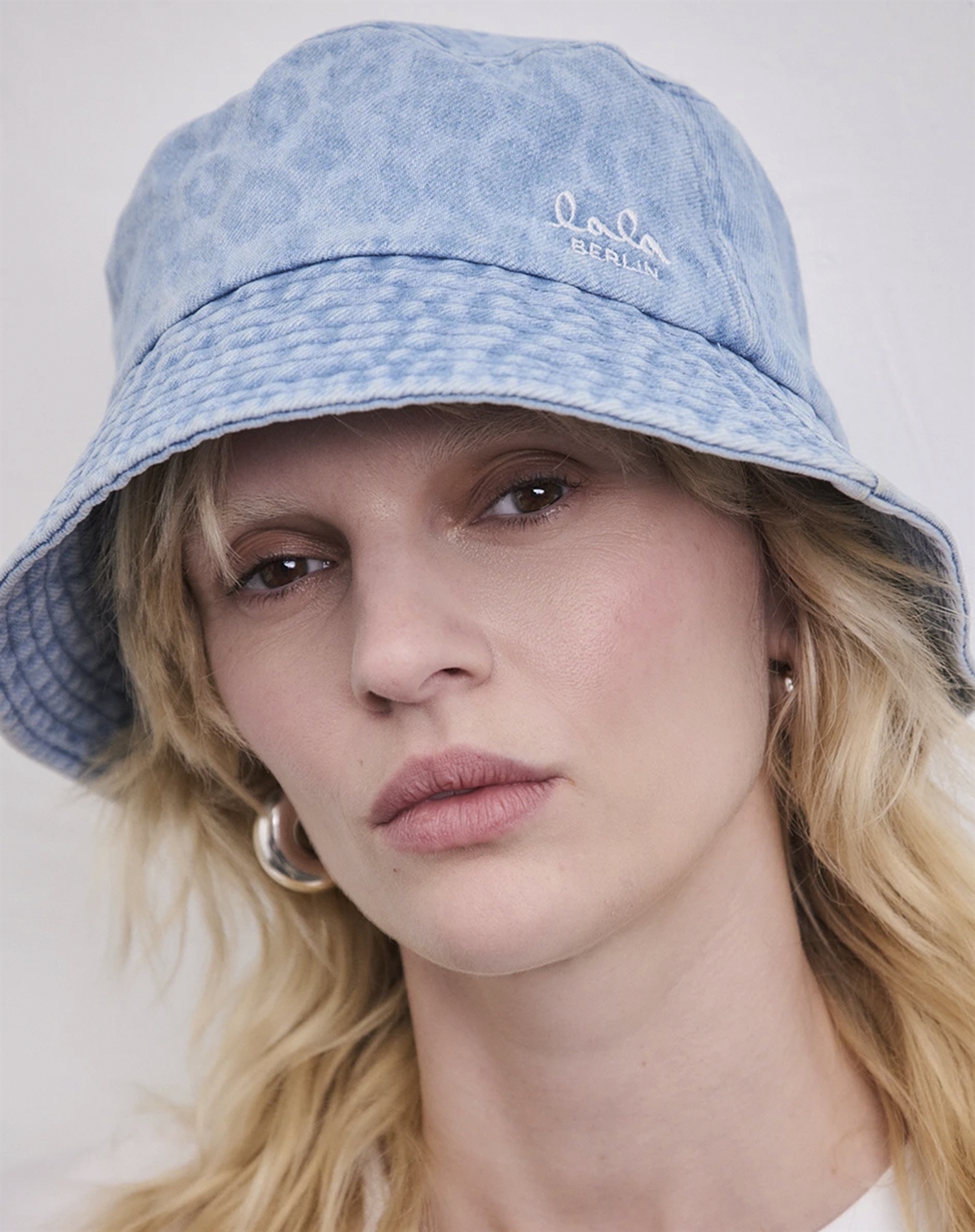 Lala Berlin - Hannah Printed Denim Bucket Hat - Washed Blue Leo