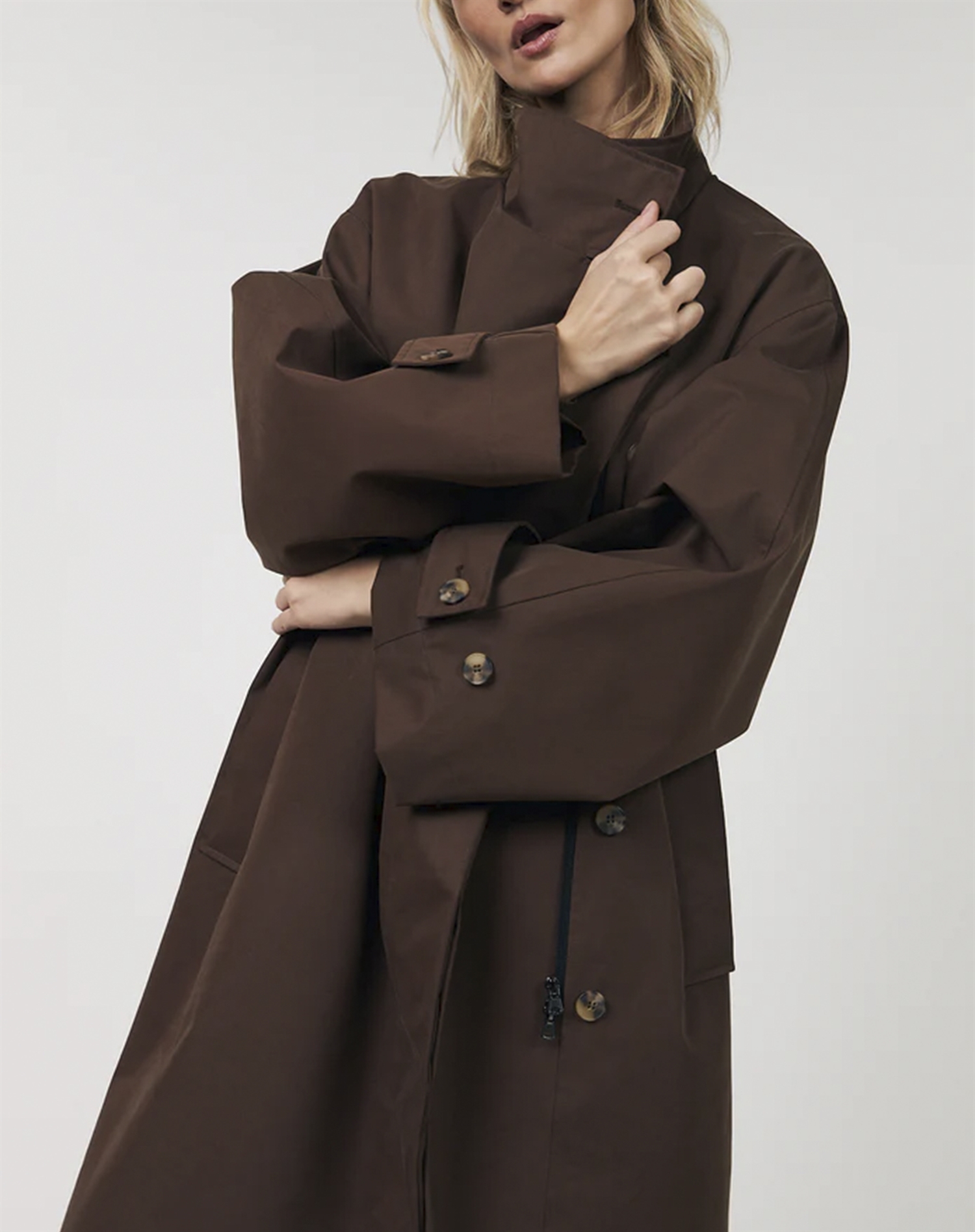 Stellen Sie sich vor, Sie kombinieren sie mit einer Jeans und einem einfachen T-Shirt für ein entspanntes Alltagsoutfit. Für einen Abend in der Stadt können Sie den Stil leicht mit einem eleganten Kleid und ein paar High Heels aufwerten. Die Jacke in Dark Mokka verleiht Ihrer Garderobe einen warmen Ton und lässt sich leicht mit hellen und dunklen Farben kombinieren.