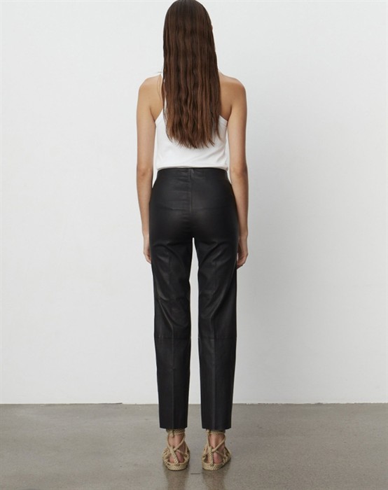 Herrlich weiche schwarze Lederhosen aus einem dehnbaren Material. Die Hosen sind von DAY Birger et Mikkelsen und haben einen elastischen Bund. Sie sind mit geraden Beinen gestaltet, die am Knöchel enden, und haben eine hohe Taille. Die Lederhosen sind super bequem und angenehm zu tragen.