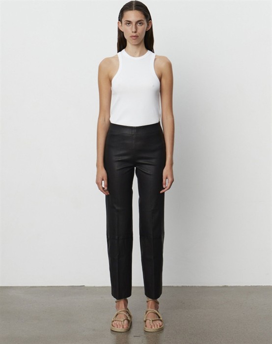 Madisson Lamb Stretch Hose - DAY Birger et MikkelsenHerrlich weiche schwarze Lederhosen aus einem dehnbaren Material. Die Hosen sind von DAY Birger et Mikkelsen und haben einen elastischen Bund. Sie sind mit geraden Beinen gestaltet, die am Knöchel enden, und haben eine hohe Taille. Die Lederhosen sind super bequem und angenehm zu tragen.