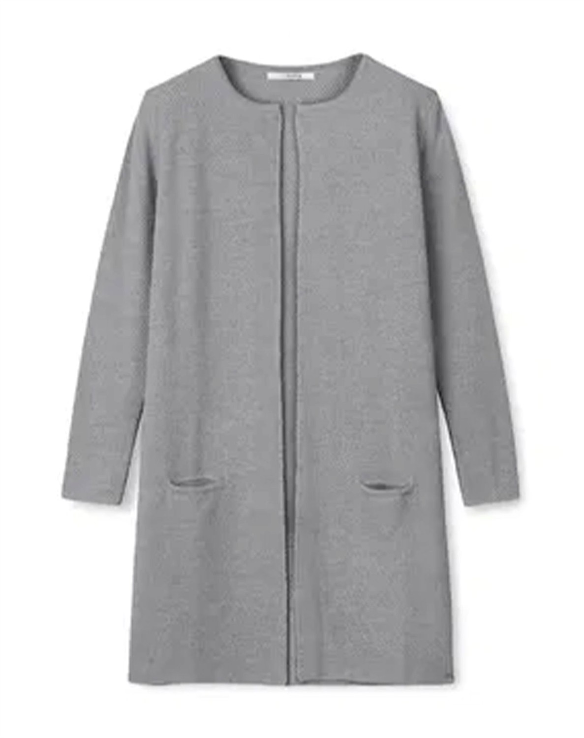 Schöner langer Perlenstrick-Cardigan in hochwertiger Wollqualität von Sibin LinnebjergDer Cardigan hat einen runden Halsausschnitt, lange Ärmel und reicht bis etwa zu den Knien. Er hat keinen Verschluss vorne und zwei praktische Taschen an den Seiten, die dem Cardigan einen klassischen, einfachen und zeitlosen Look verleihen.