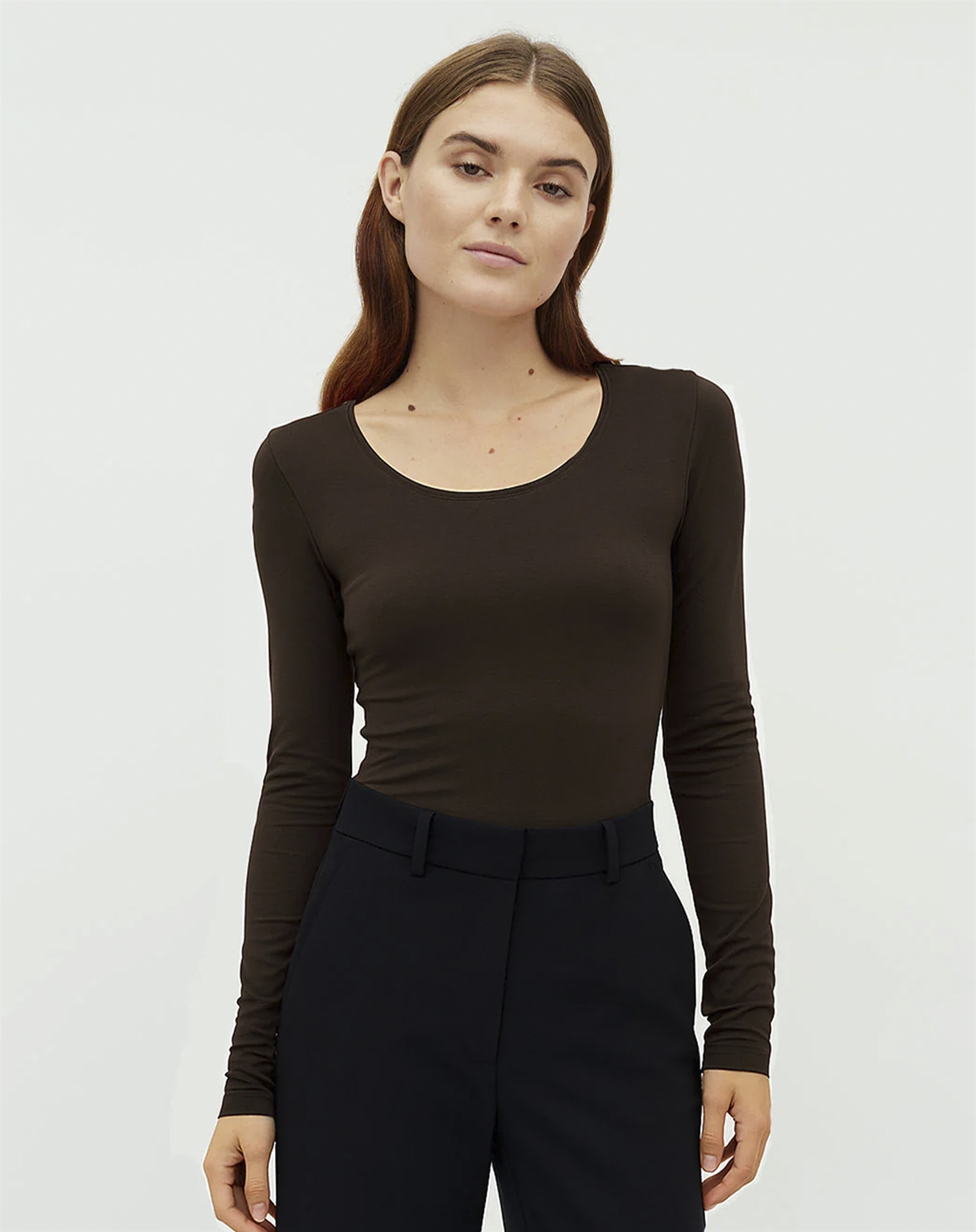 Alles in allem ist das Mbym - Anna Basic Langarmshirt - Java ein hervorragendes Basic, das nie aus der Mode kommt. Ob du auf dem Weg zu einem Kaffee-Date bist oder einen Tag im Büro vor dir hast: Dieses Shirt lässt sich mühelos anpassen und wertet dein Outfit auf.