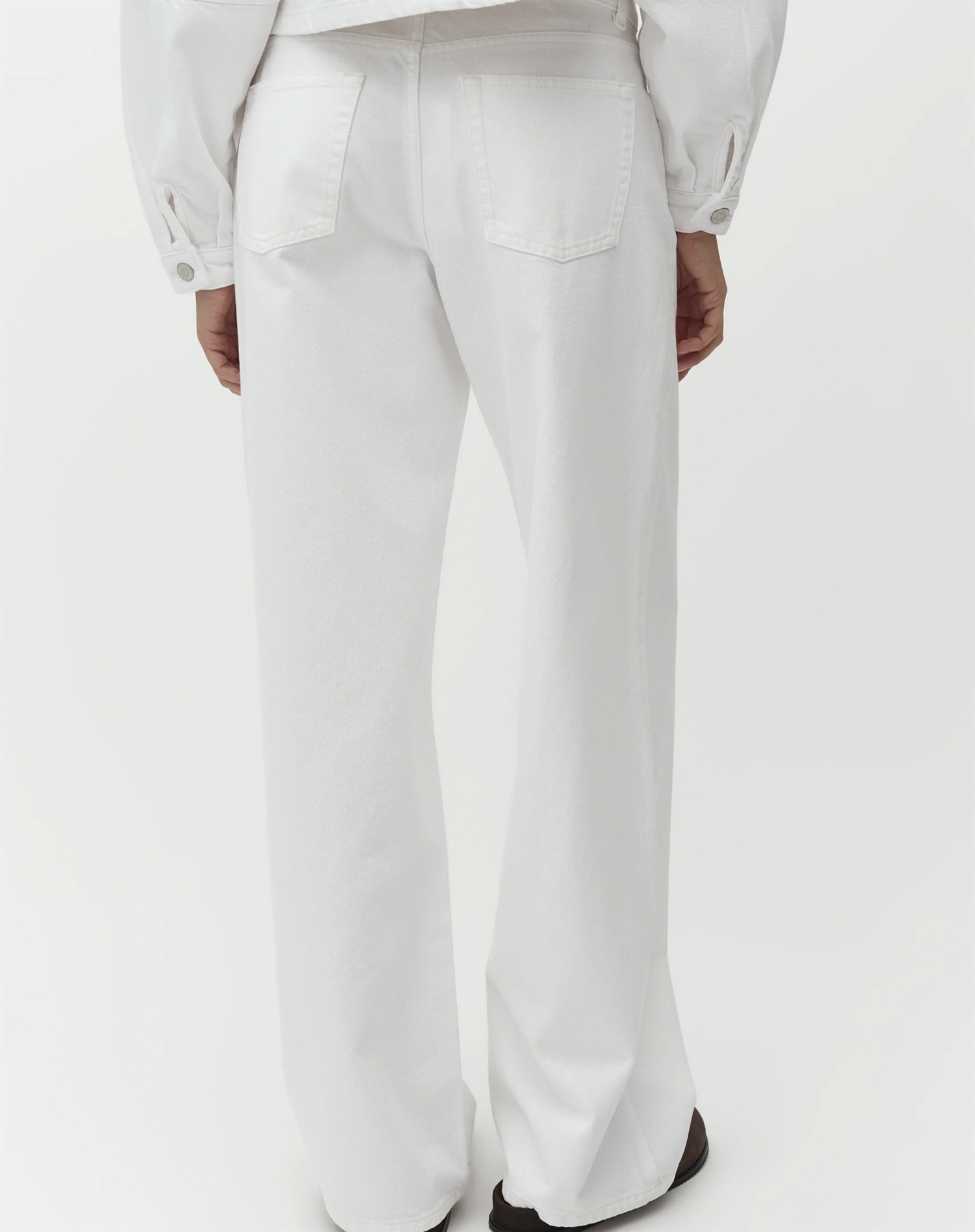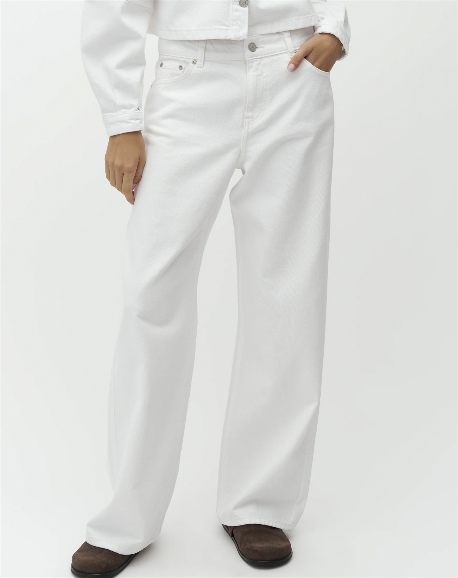 Stell dir einen Tag vor, an dem du diese Jeans mit einem kuscheligen Oversize-Pullover für einen entspannten Look kombinierst – oder mit einem cleanen, schwarzen Blazer für einen eleganteren, sophistizierten Auftritt. Die weißen Jeans sind vielseitig und lassen sich je nach Anlass ganz einfach hoch- oder runterstylen. Ergänze chunky Sneakers oder elegante High Heels, um dein Outfit perfekt abzurunden.