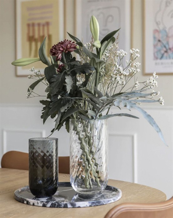 Meadow Swirl Cylinder Vase - Medium - Clear - SpecktrumSchöne Vase in der Farbe Clear.Handgefertigtes Muster und mundgeblasen.28 x 15 cm.Jede Vase ist in ihrem Aussehen einzigartig.Es können Variationen von kleinen Luftblasen auftreten.