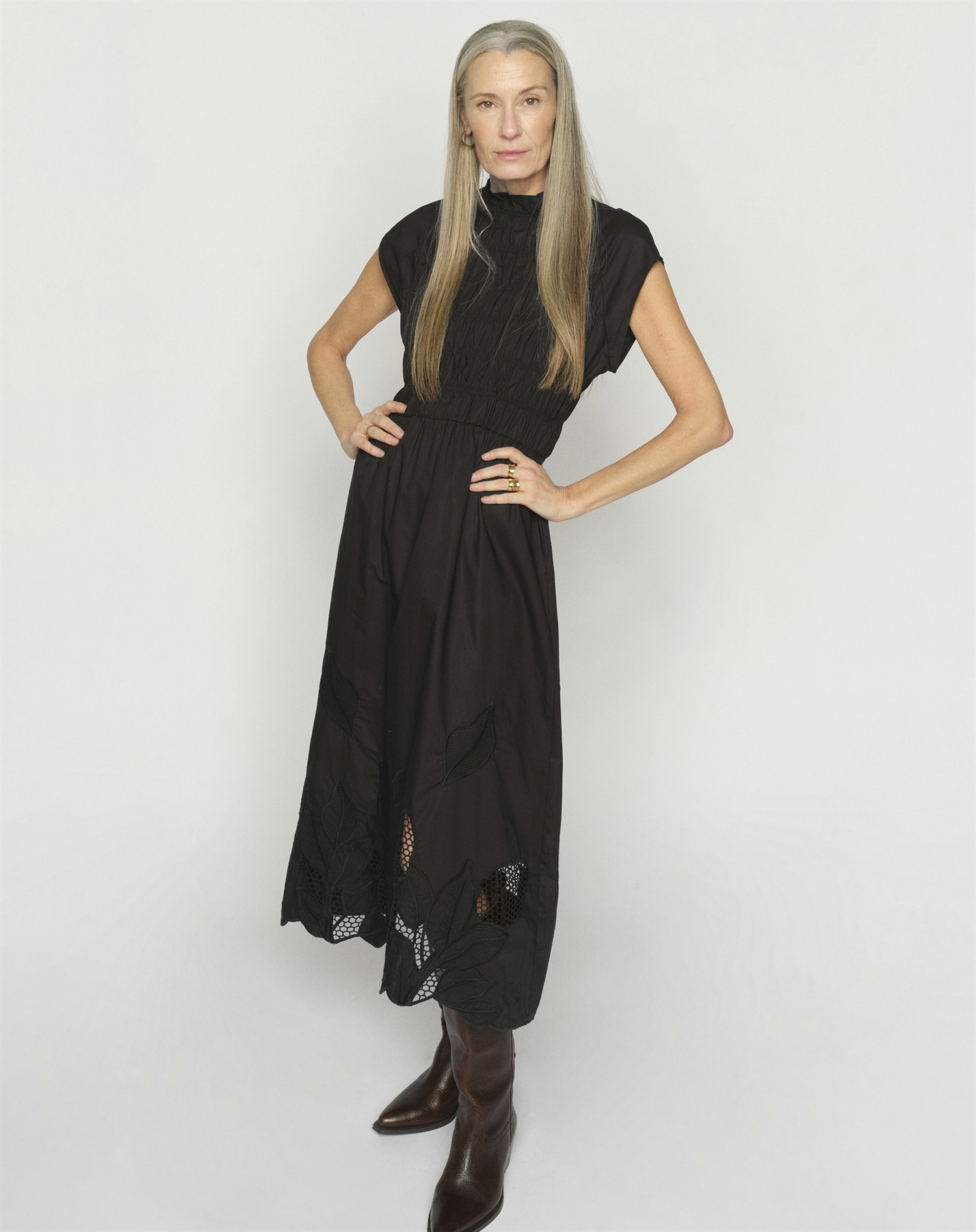 Der monochrome Look macht das Kleid vielseitig und passend für viele Anlässe. Kombiniere es mit High Heels und einer eleganten Clutch für einen formellen Auftritt oder style es mit Sneakers und einer Denimjacke für ein entspanntes Alltagsoutfit. Der schwarze Farbton macht es leicht, persönliche Accessoires zu ergänzen – ob ein farbenfroher Schal oder auffälliger Schmuck.