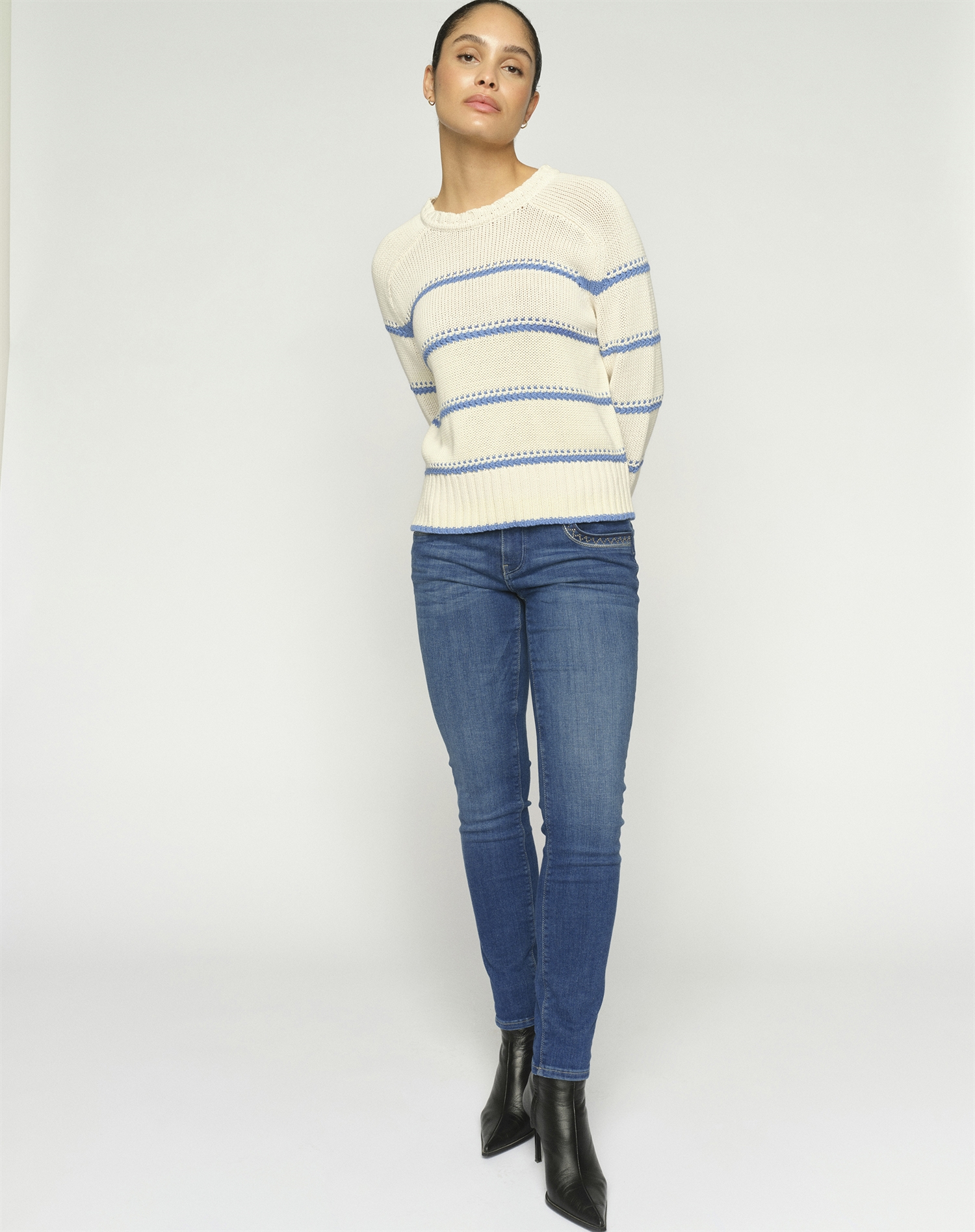 Blaue Jeans sind ein Klassiker, der sich mit nahezu allem stylen lässt. Stell dir vor, du kombinierst sie mit einer weißen Bluse für einen cleanen, klassischen Look, oder du setzt auf eine entspannte Ausstrahlung mit einem lockeren T-Shirt und Sneakers. Am Abend wechselst du ganz einfach zu stylischen Ankle Boots und einem eleganten Top. Die Möglichkeiten sind vielfältig, und diese Jeans wird schnell zu deinem Go-to werden, ganz egal zu welchem Anlass.