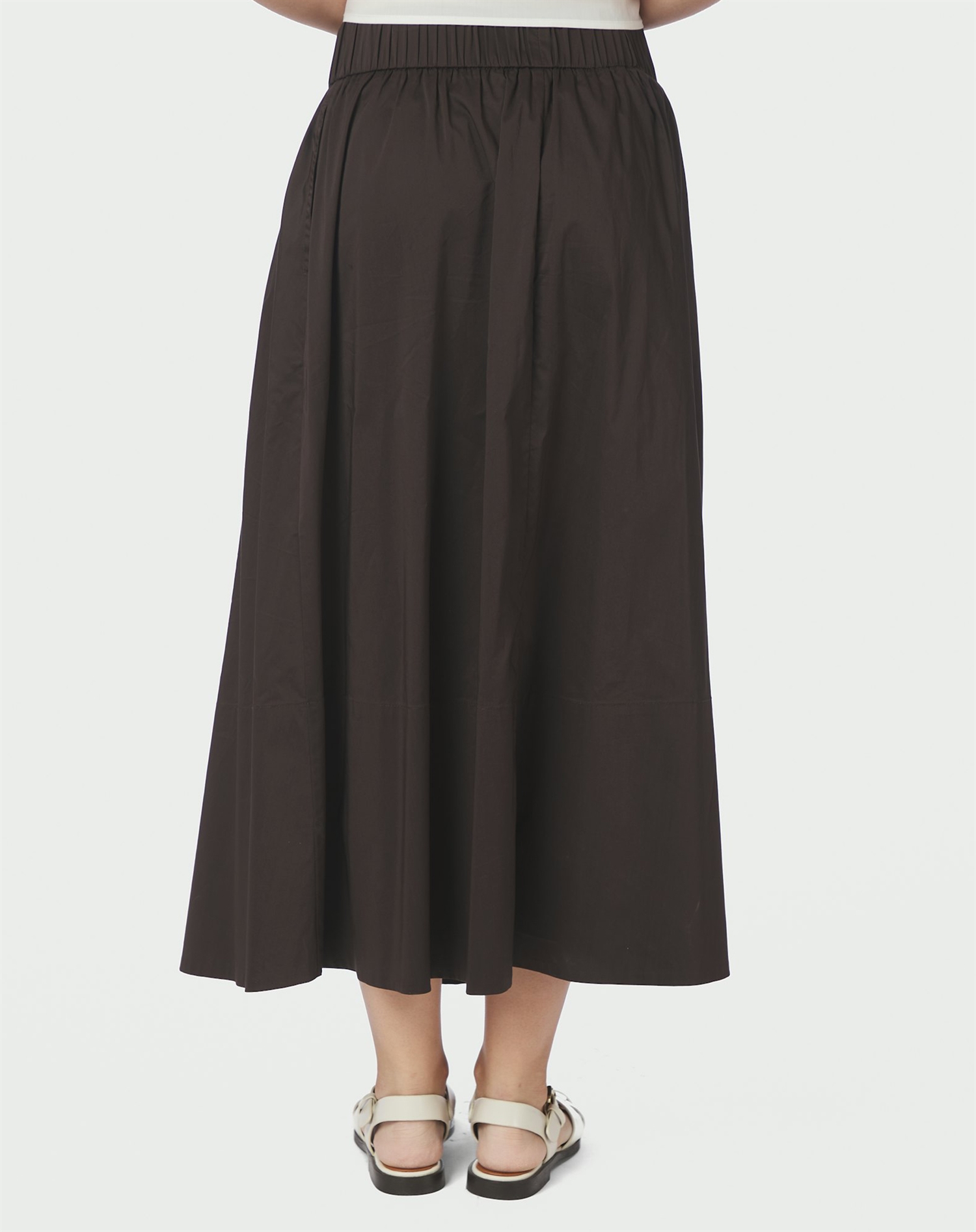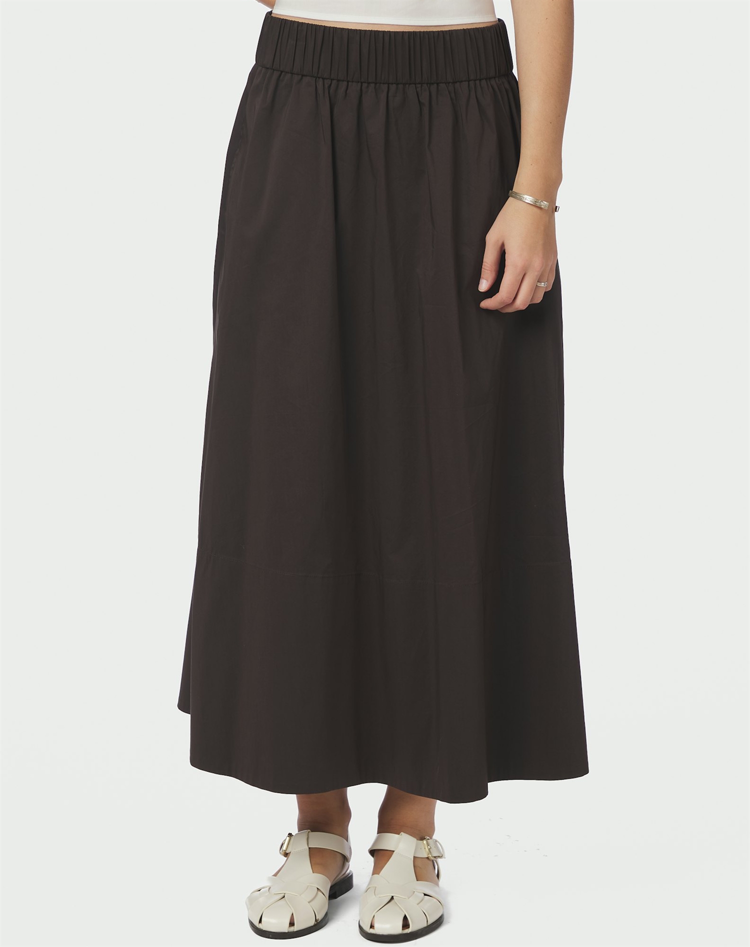 Warum wirst du diesen Rock lieben? Sein tiefes Schokoladenbraun ist sowohl modern als auch zeitlos, während die lange Länge für einen fließenden und eleganten Look sorgt. Das Poplin-Material, das oft für leichte und luftige Pieces verwendet wird, fühlt sich angenehm an und macht ihn sowohl für den Alltag als auch für besondere Anlässe geeignet. Und dazu kommt: Mit seiner Vielseitigkeit kann dieser Rock schnell zu einem Favoriten in deiner Garderobe werden.