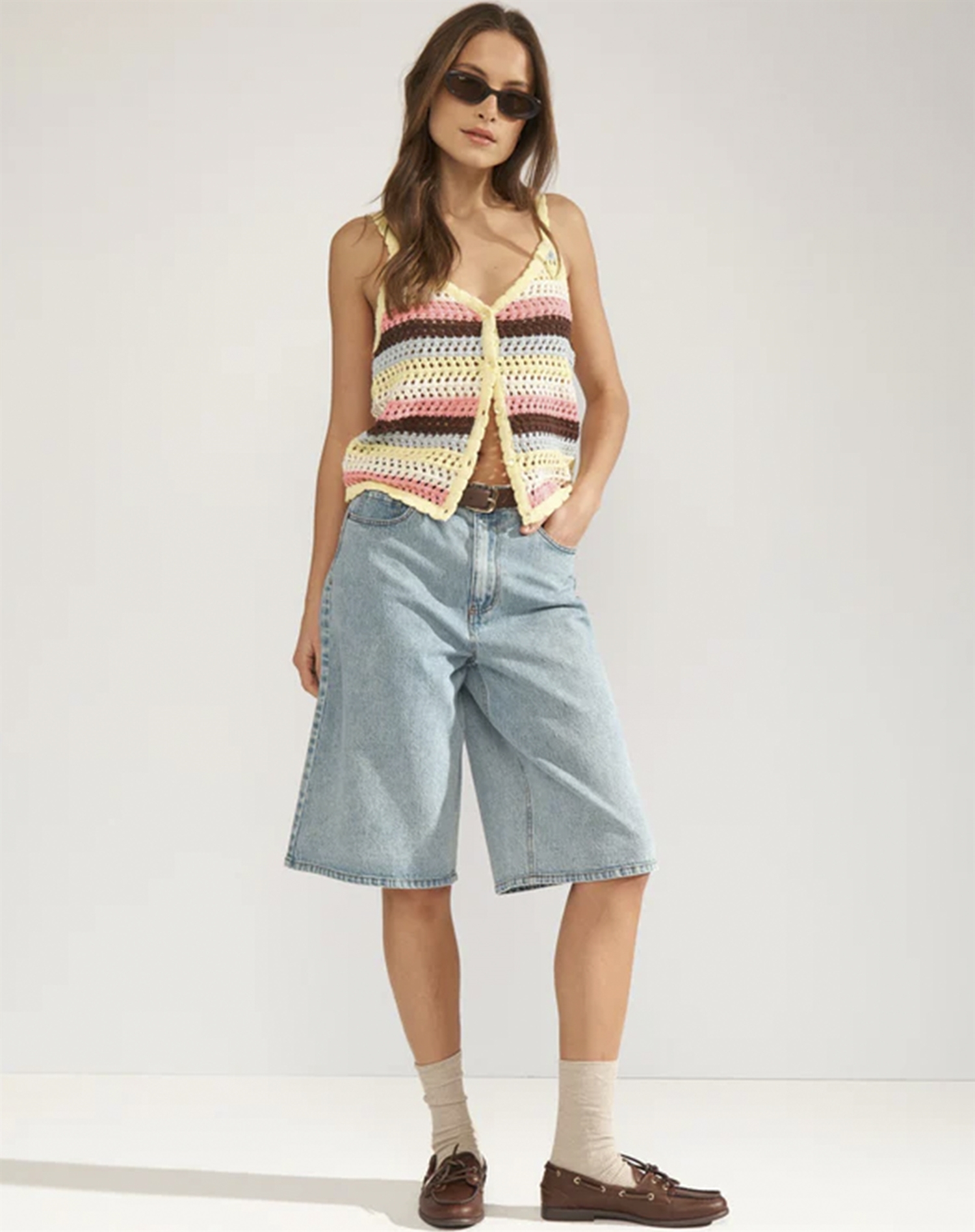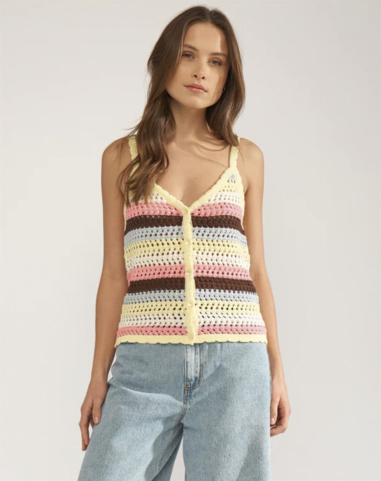 Zum Stylen kannst du das Singlet mit einer hellen Jeans für einen klassischen Look kombinieren oder einen Rock wählen, um einen femininen Twist hinzuzufügen. Wenn du Lust auf etwas Abwechslung hast, kannst du es auch im Layering-Look mit einer leichten Jacke oder einem Cardigan für kühlere Sommerabende tragen. Die Farbe Popcorn lädt zu einem verspielten Ausdruck ein und lässt sich je nach Stimmung sowohl mit farbenfrohen Accessoires als auch mit neutralen Tönen kombinieren.