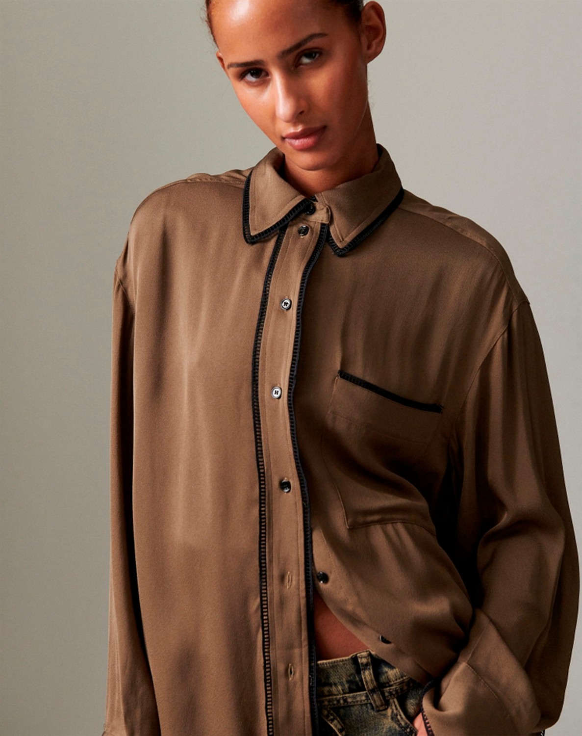 Olenna Matte Crepe Bluse - Capers
