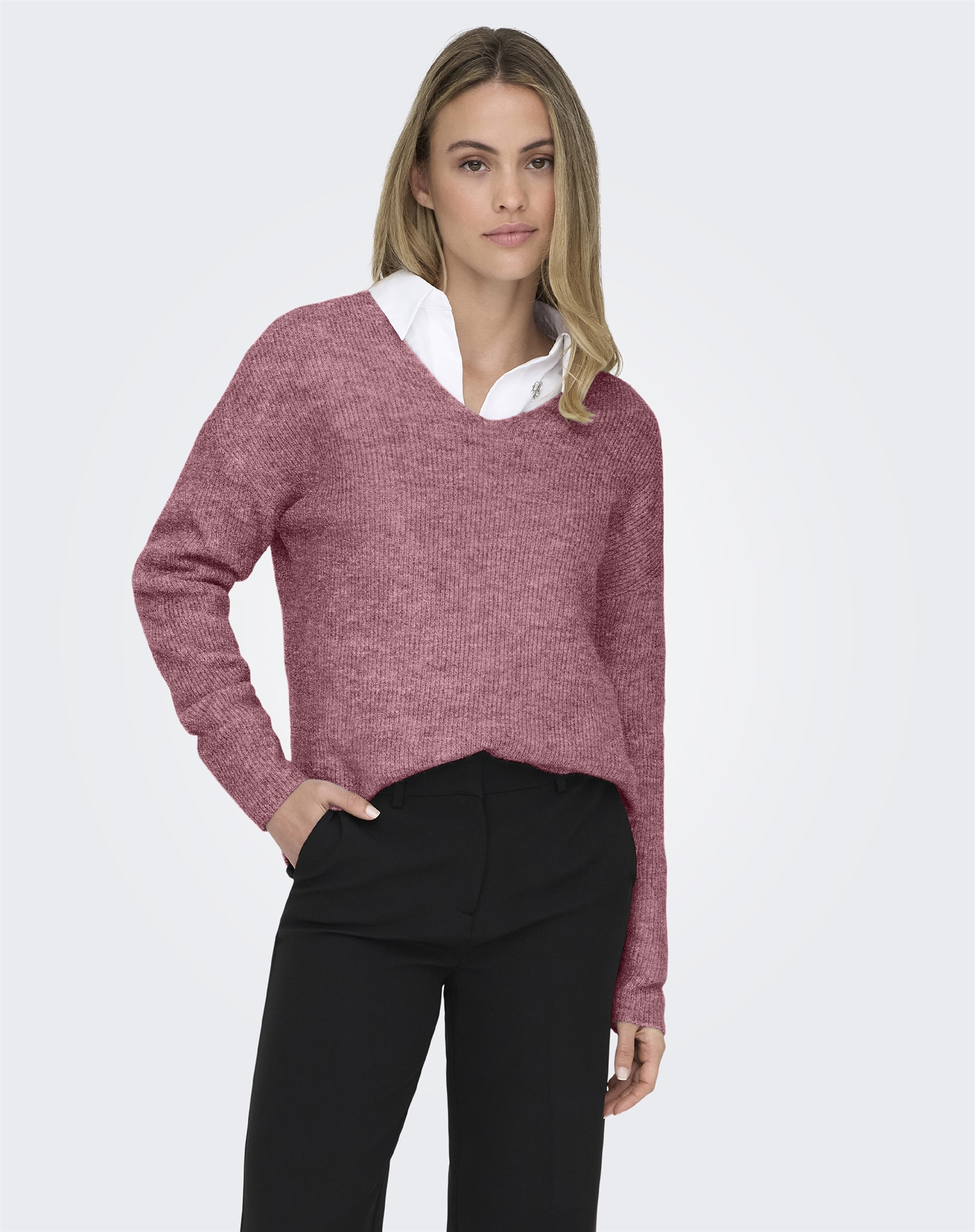 Only - OnlCamilla V-Neck L/S Strick - Renaissanc Rose/Melange