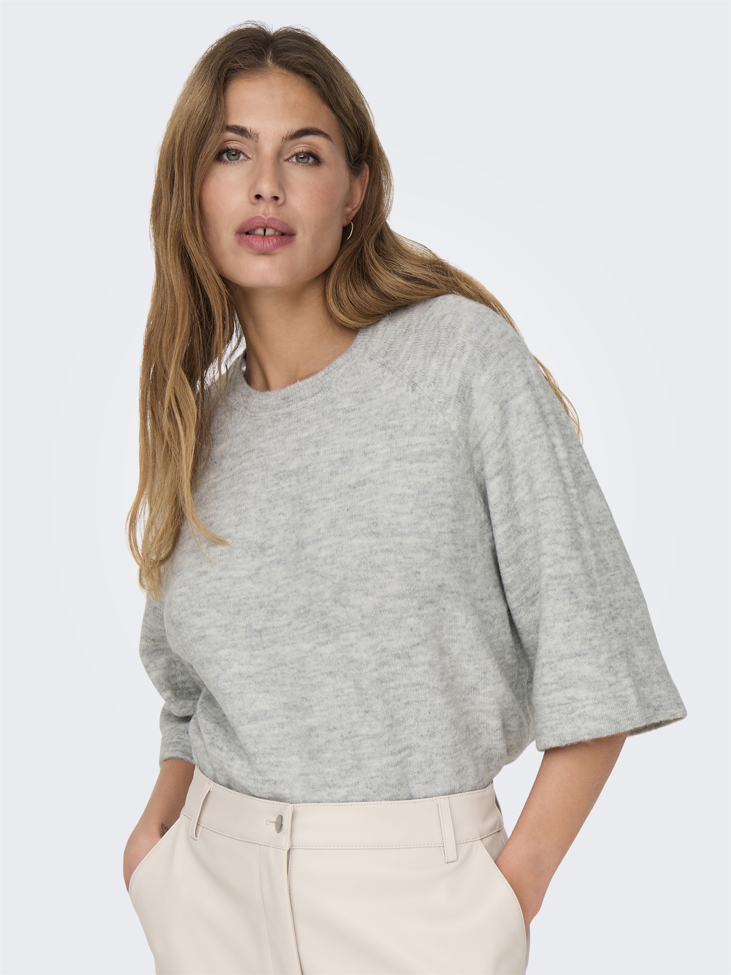 Only - Simoni 3/4 Strick - Light Grey Melange
