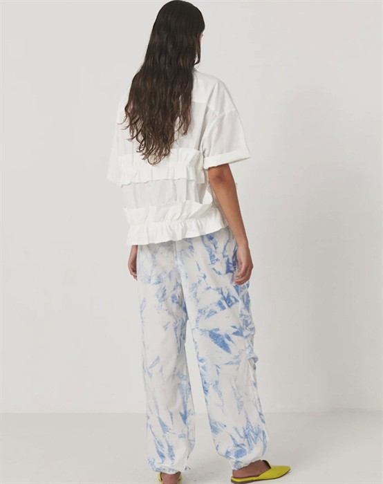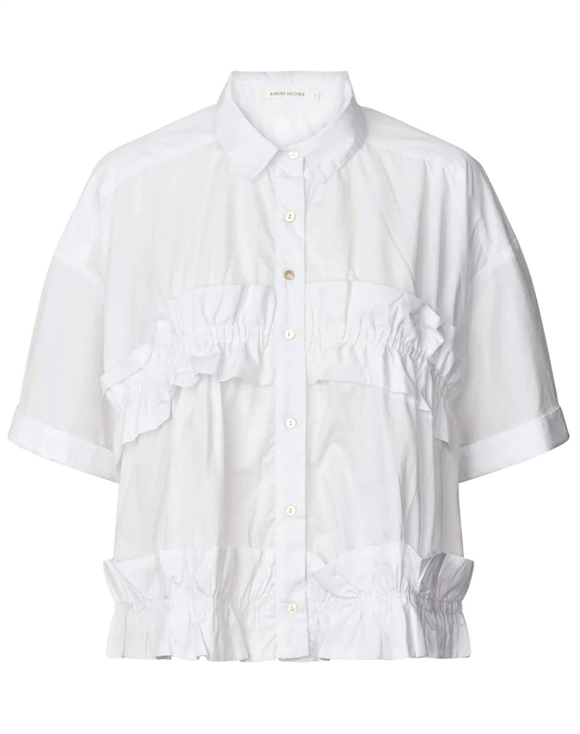Paige Poplin Frill Top - Rabens SalonerFeinste Poplin-Bluse mit Rüschen-Details.Kurze Ärmel.Kragen am Hals.Angenehmes und leichtes Material.Lässige Passform, die schön sitzt.Wir empfehlen, Ihre normale Größe zu wählen.Kombinieren Sie die feminine Bluse im Sommer mit schicken Denimshorts oder einem Rock von Ivy Copenhagen.