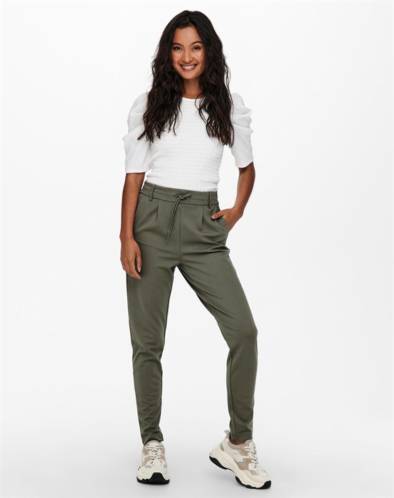 Poptrash Hosen - Only Poptrash Hosen von Only. Herrlich weiche Hosen mit einer entspannten Passform und schmalen Beinen. Sie bestehen aus einem leicht dehnbaren Viskosematerial, das schön fällt. Die Hosen haben sowohl einen elastischen Bund als auch ein Bindeband in der Taille. Sie haben sowohl vorne als auch hinten Taschen.