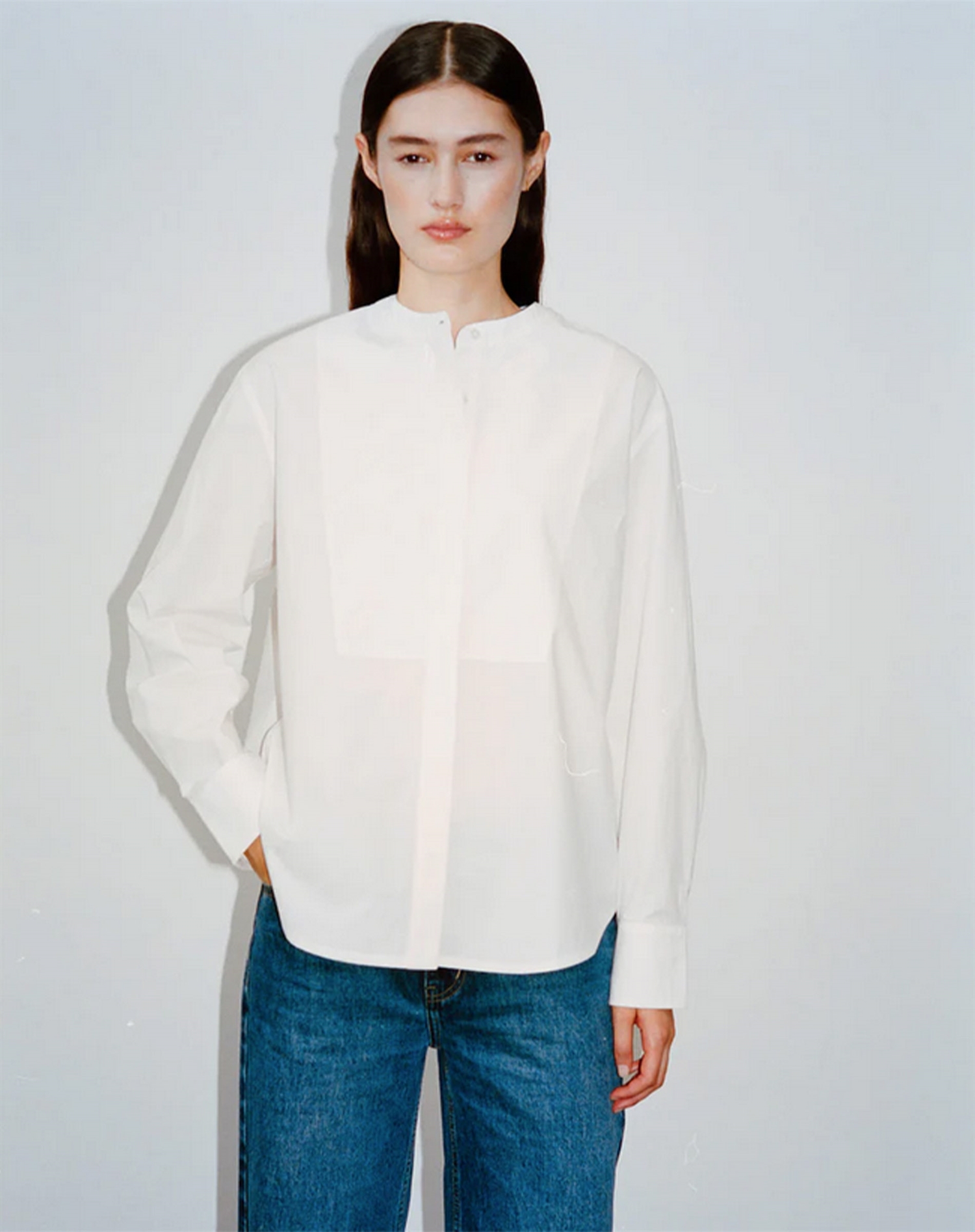 Rabens Saloner - Sunny Crisp Cotton Bib Front Hemd - White