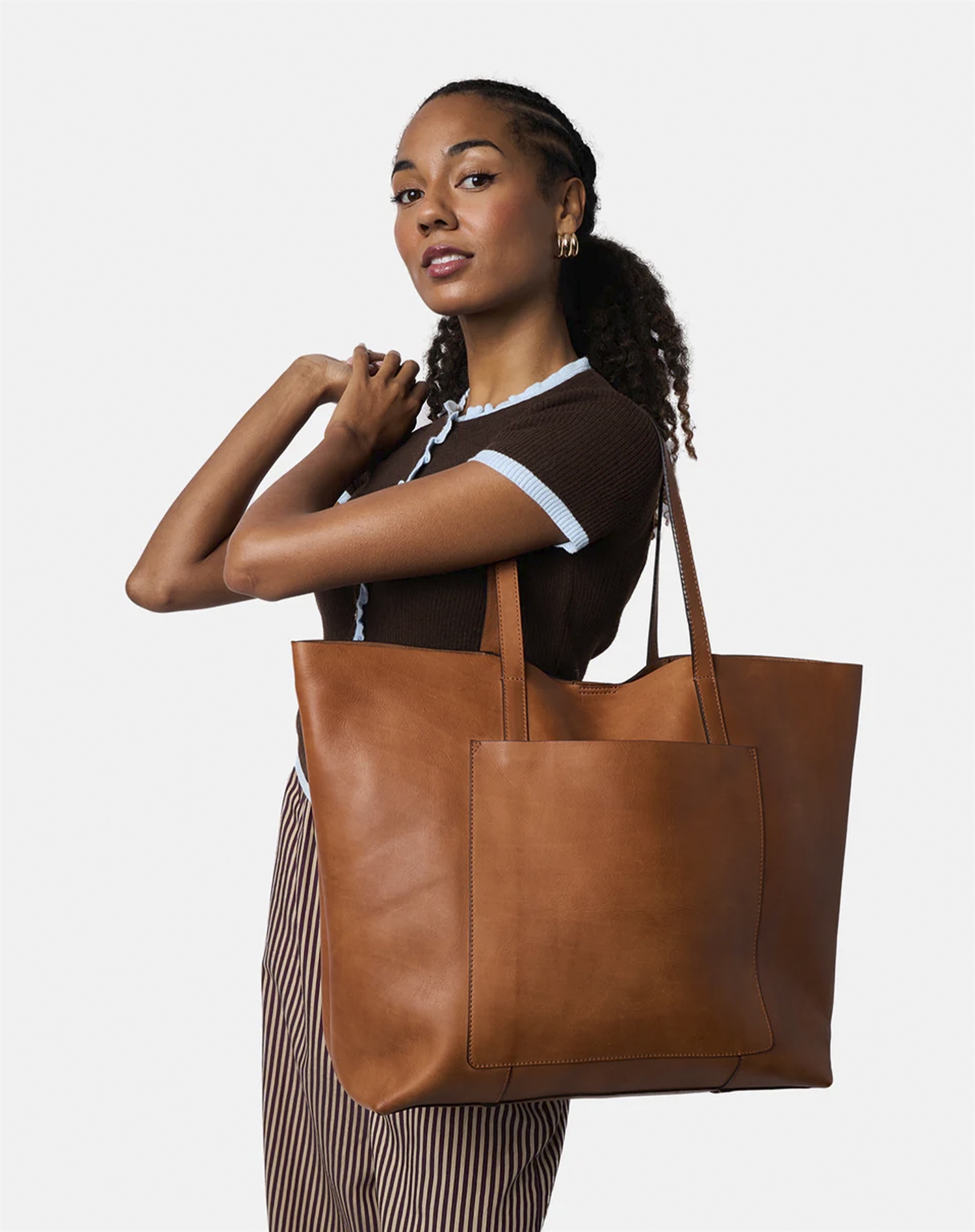 Stell dir einen Tag in der Stadt vor, an dem du die Nuha Tasche mit deinen Lieblingsjeans und einem schlichten weißen Hemd kombinierst. Der warme Tan-Ton setzt einen raffinierten Kontrast zu deinem Look, und die Größe der Tasche macht sie ideal, um alles von deinem Laptop bis zu den wichtigsten Kleinigkeiten zu verstauen. Geht es am Abend noch aus? Kombiniere die Tasche mit einem kleinen schwarzen Kleid, und du bist bereit für Dinner und Drinks.