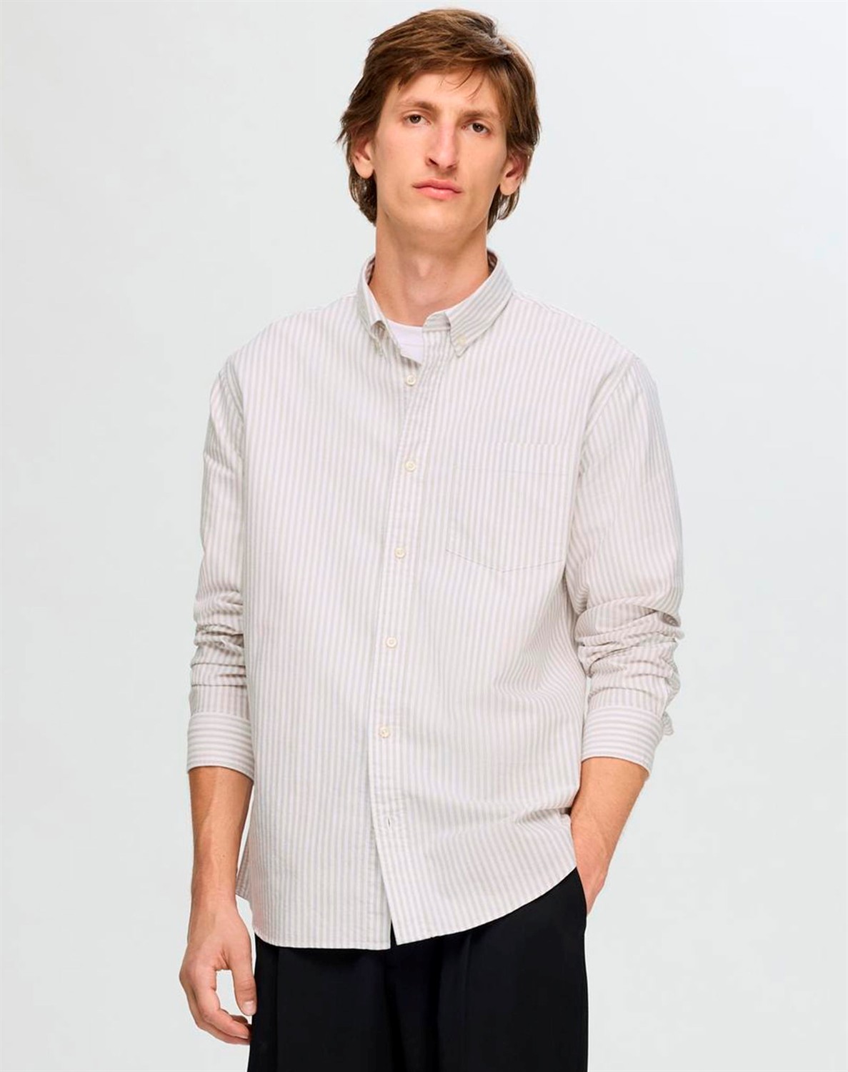 klassisches Hemd von Selected. Das Hemd hat lange Ärmel, einen klassischen Kragen und ist durchgeknöpft. Es hat eine normale Passform, die es bequem zu tragen macht. Auf der einen Brustseite hat es eine Tasche, die sowohl praktisch als auch super cool ist.
