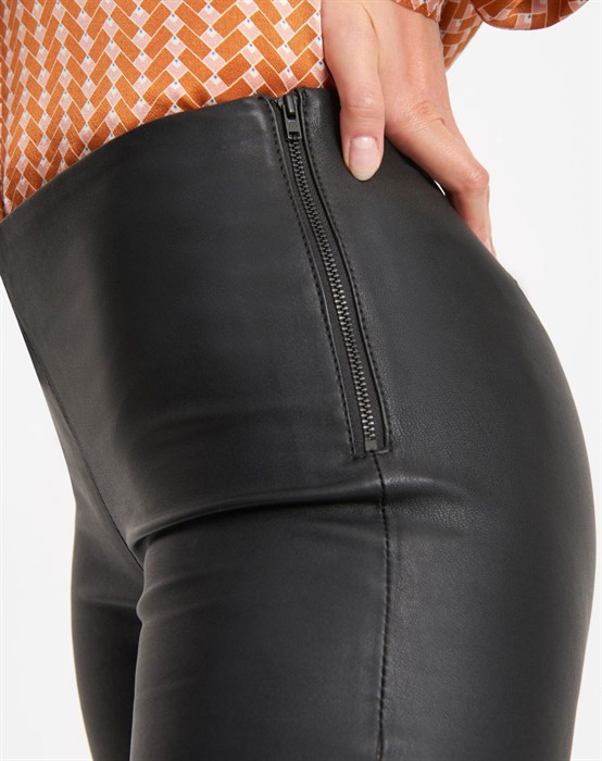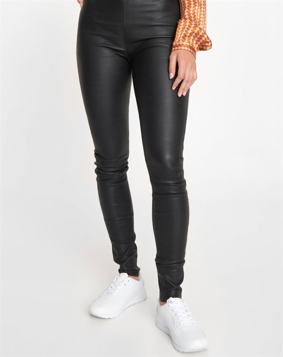 Wunderschöne, eng anliegende Hosen von Soft Rebels. Die Hosen bestehen aus 100% Lammleder mit Stretch, das sich angenehm tragen lässt. Zudem haben die Hosen  einen breiten elastischen Bund innen an der Taille. Die Innennaht beträgt 80 cm in Größe S.