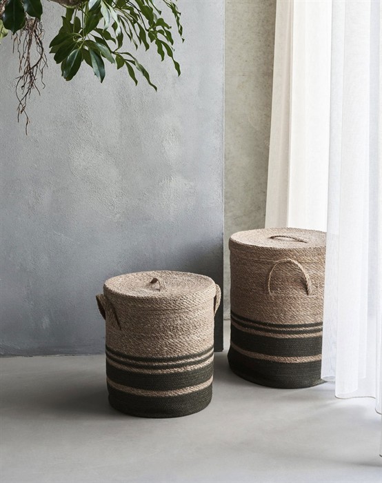 Wäschekorb S - Army - House DoctorSchöner Korb aus Naturmaterial von House DoctorDer Korb hat Griffe und einen abnehmbaren DeckelKann als Wäschekorb oder zur Aufbewahrung verwendet werdenMisst 40 x 35 cm und ist in zwei Größen erhältlich